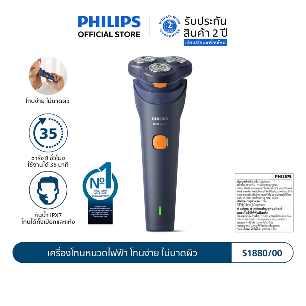Philips ฟิลิปส์ เครื่องโกนหนวดไฟฟ้า โกนง่าย ไม่บาดผิว รุ่น S1103/02 , S1880/00