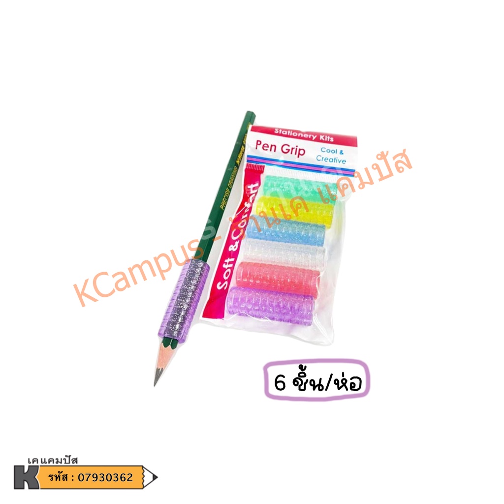 ปลอกจับปากกา ปลอกจับดินสอ ยางใส US ยูเอส ปลอกปากกา กลิตเตอร์คละสี (6ชิ้น/ห่อ)