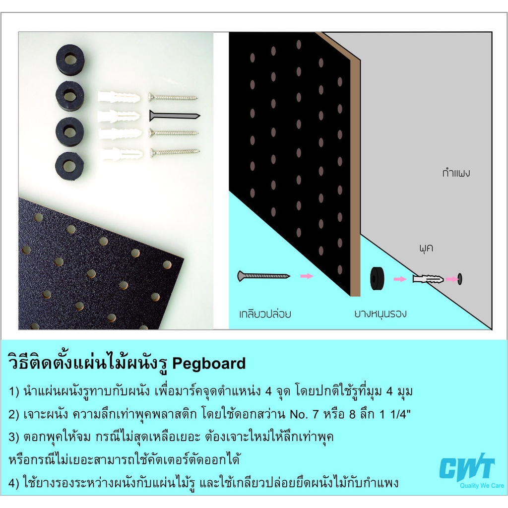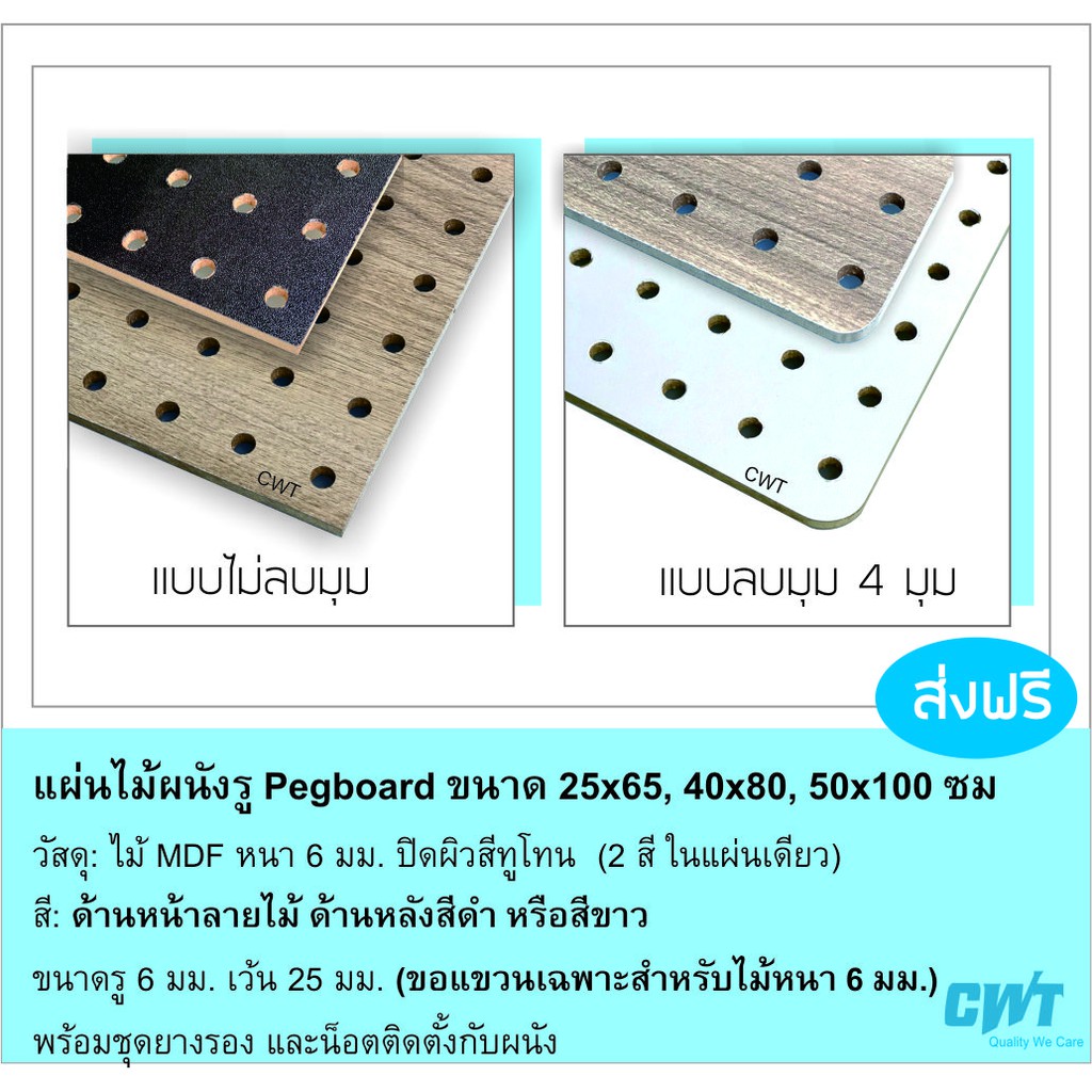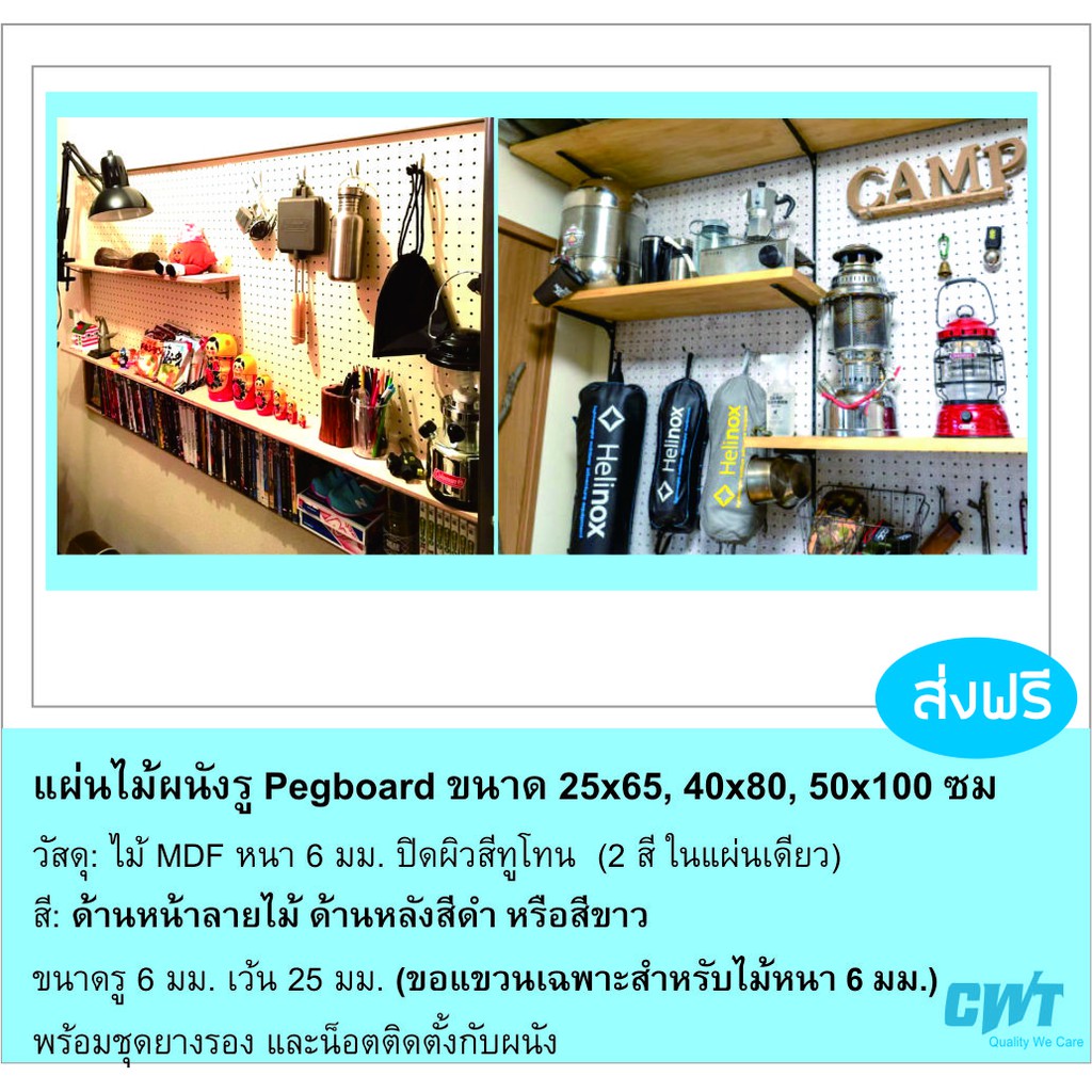 แผ่นผนังรูไม้ Pegboard เป๊กบอร์ด เพ็กบอร์ด แขวนเครื่องมือ 50x100 ซม อุปกรณ์ ตะขอ ไม้ MDF หนา 6 มม.