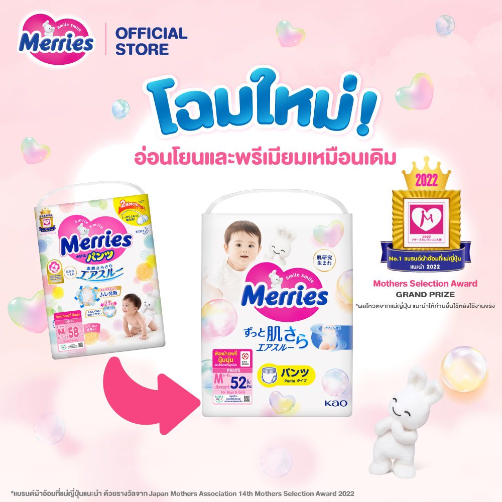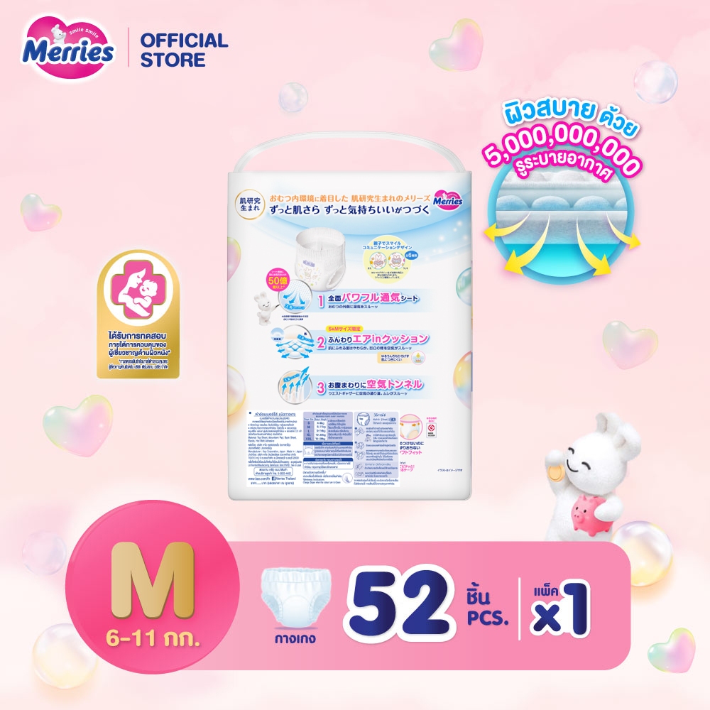 Merries Pants Super Jumbo M 52 pcs. ผ้าอ้อมเด็กเมอร์รี่ส์ชนิดกางเกง ไซส์ M 52 ชิ้น