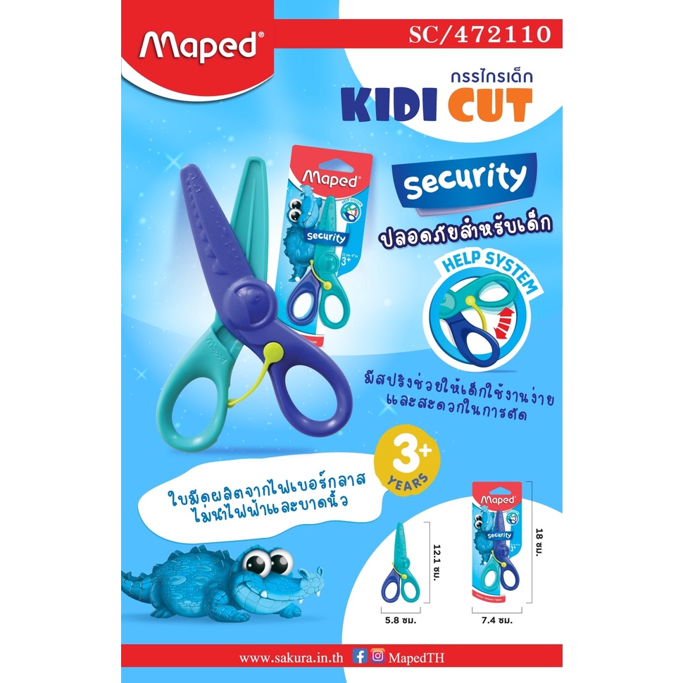 กรรไกรเด็ก MAPED Kidi Cut สำหรับอายุ 2-3 ขวบขึ้นไป
