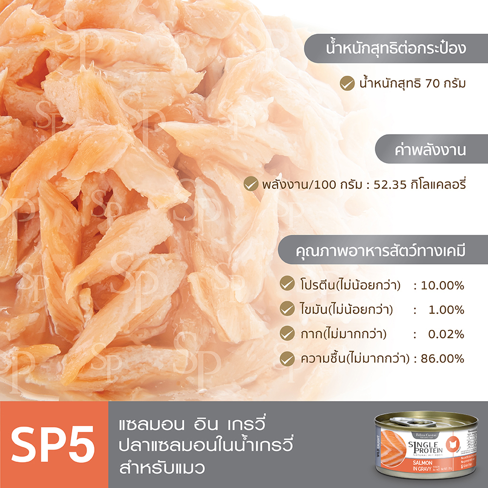 Single Protein (อาหารสำหรับแมว) : SP.5 Wild Caught Salmon in Gravy (ปลาแซลมอน) 70g.
