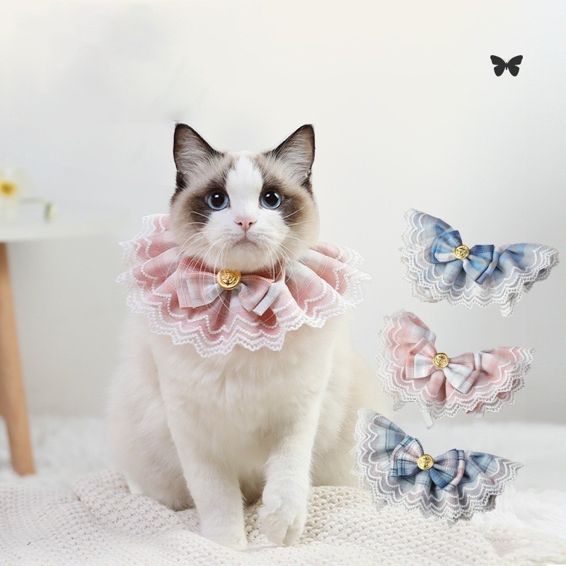 🇹🇭สินค้าพร้อมส่งจากไทย🇹🇭ปลอกคอสัตว์เลี้ยง ลูกไม้น่ารัก ผ้ากันเปื้อน