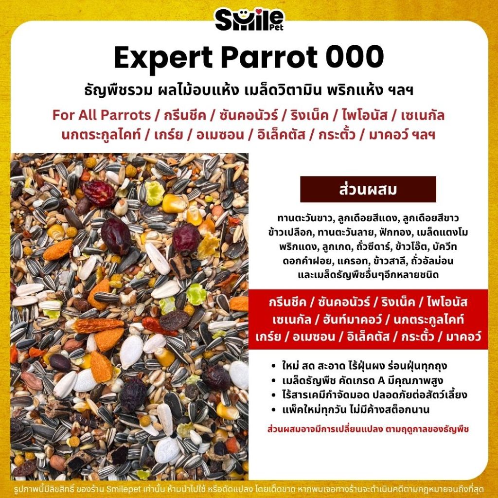 Expert Parrot 000 อาหารนกแก้ว เกรดพรีเมี่ยม สำหรับนกแก้วขนาดกลาง - ใหญ่ (แบ่งขาย 500G / 1KG)
