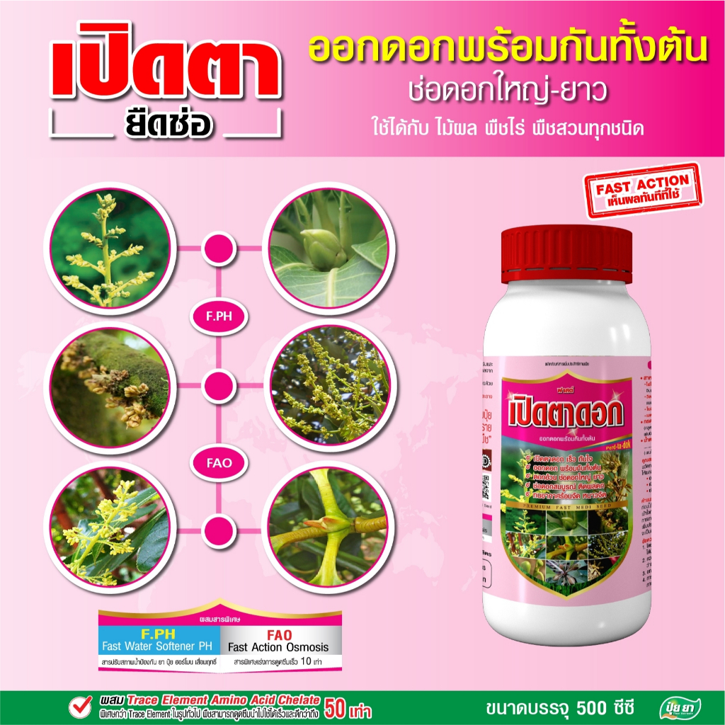เปิดตาดอก ยืดช่อ ติดผลดก สาหร่ายเปิดตาดอก ไซโตไคนิน เร่งดอก ดอกดก ช่อยาว ยาเปิดตาดอก ออกดอกเร่งด่วน หลายขนาด