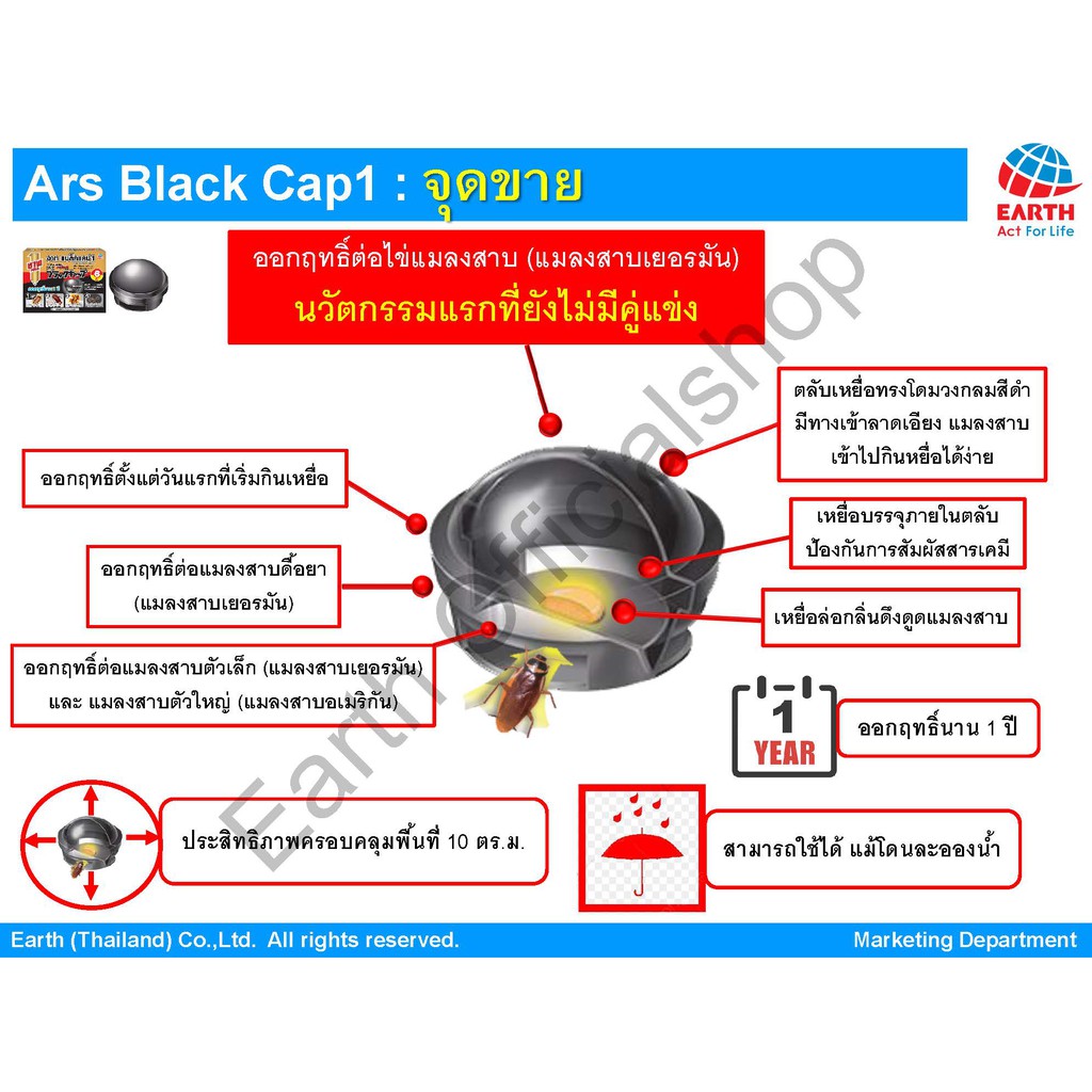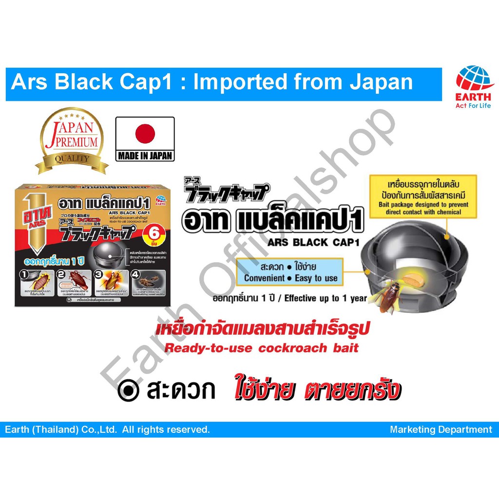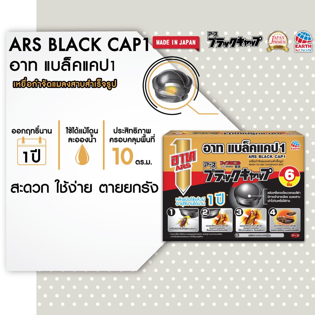อาท แบล็ค แคป เหยื่อกำจัดแมลงสาบ สำเร็จรูป บรรจุ 6ชิ้น ใช้ได้นาน1ปี ARS BLACK CAP 6pcs./box EFFECTIVE FOR A YEAR
