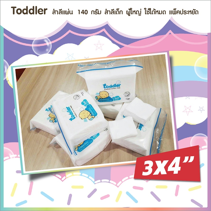สำลีแผ่น Toddler (ถูกมาก) เนื้อหนา ไม่เป็นขุย ขนาดใหญ่พิเศษ 3×4" ใช้ได้ทั้งเด็กและผู้ใหญ่ คุ้มมาก