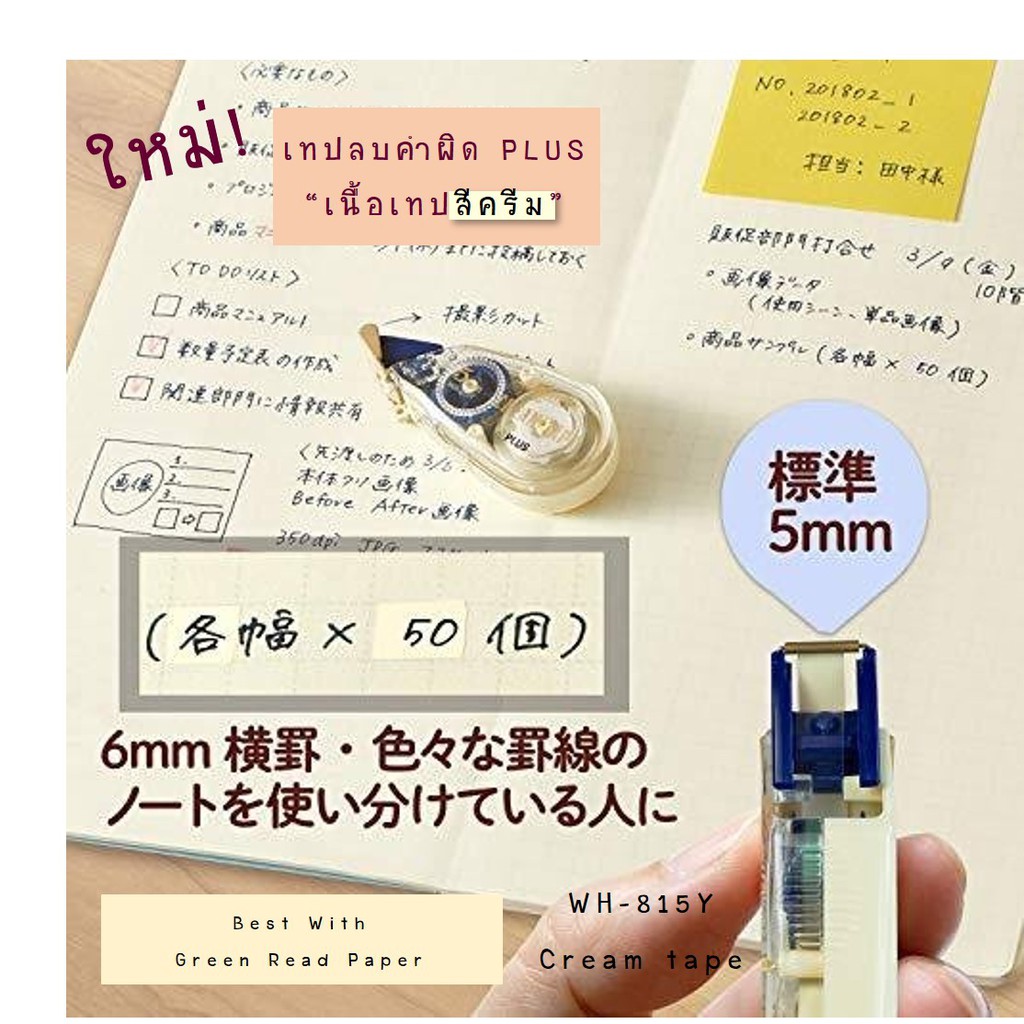 เทปลบคำผิด PLUS รุ่นพิเศษ CREAM TAPE (เนื้อเทปสีครีม) สำหรับกระดาษสีครีม