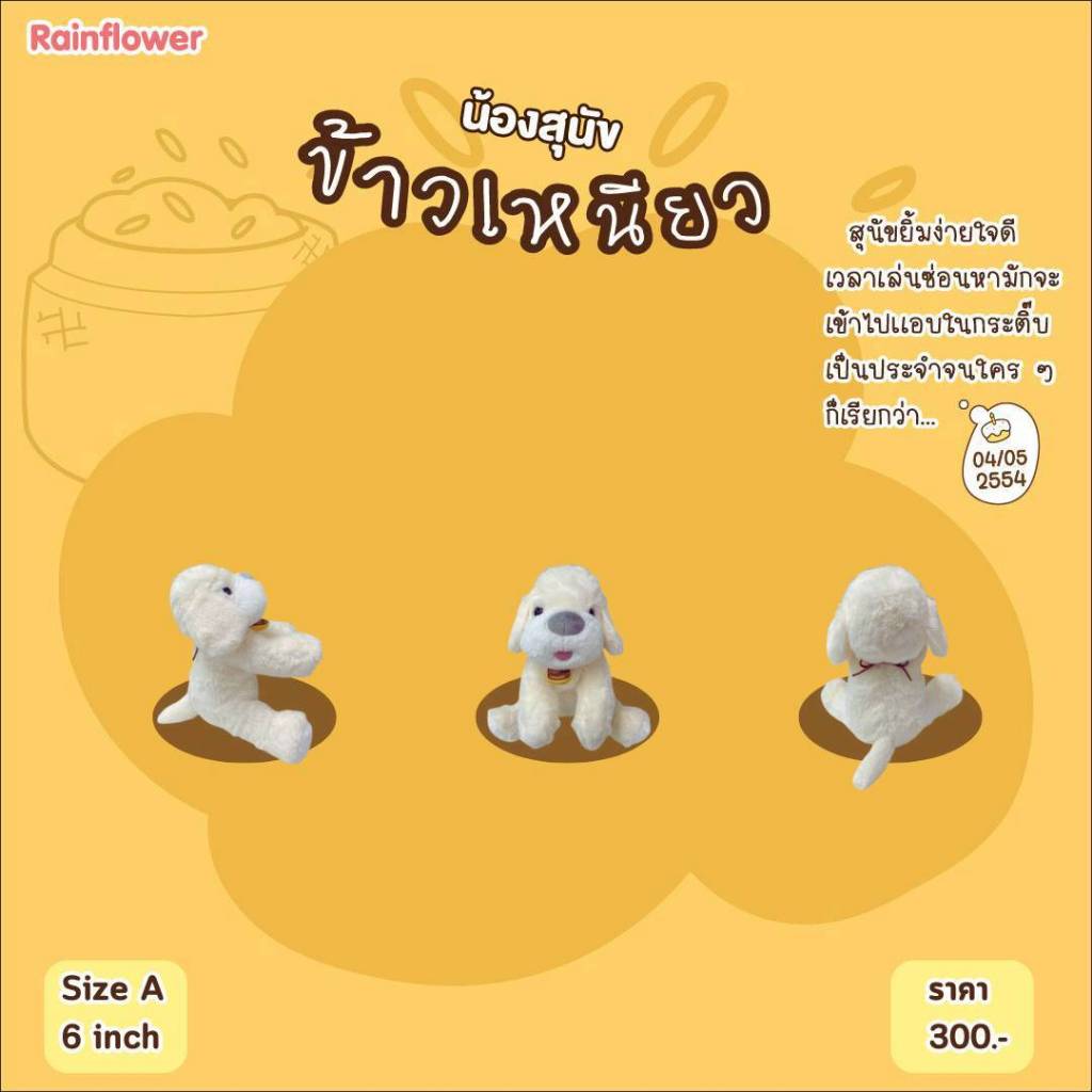 Rainflower ตุ๊กตาสุนัขข้าวเหนียว (ไม่มีกลิ่น) สีครีม 2026
