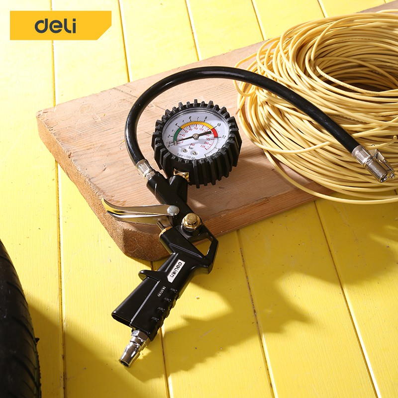 Deli หัวเติมลมพร้อมเกจ์วัดลม ปืนเติมลมยาง 220 ปอนด์ ขนาดกระทัดรัด แข็งแรง ทนทาน