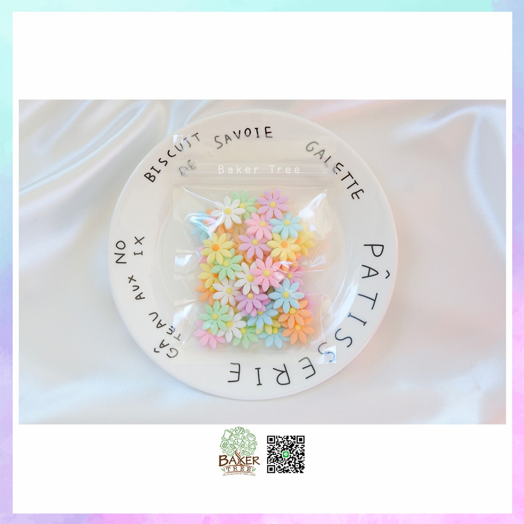 Baker Tree น้ำตาลตกแต่งเค้ก ดอกเดซี่จิ๋ว สีพาสเทล สำหรับงานเบเกอรี่ ดอกไม้ไอซิ่ง