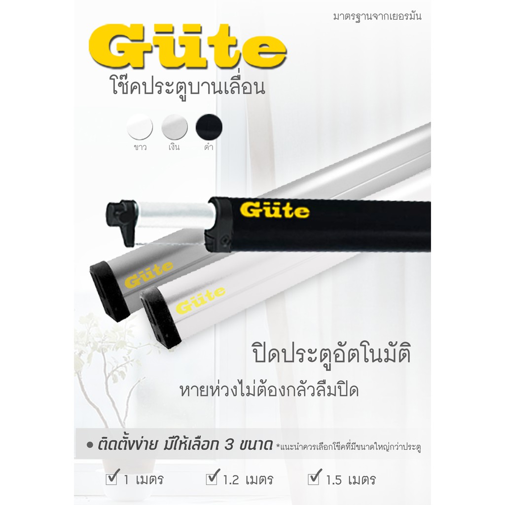 โช๊คสำหรับ ประตูบานเลื่อน 1 m 1.2 m 1.5 เมตร (สีดำ) ยี่ห้อ Gute ป้องกันประตูเปิดค้าง
