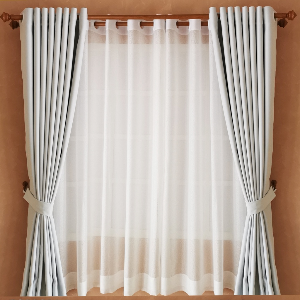 ผ้าม่านตาไก่สีขาวควันบุหรี่ ผ้าม่านประตูหน้าต่าง กันแสงได้ 95-98% (ราคาขายต่อ 1 ผืน) รุ่น Premium