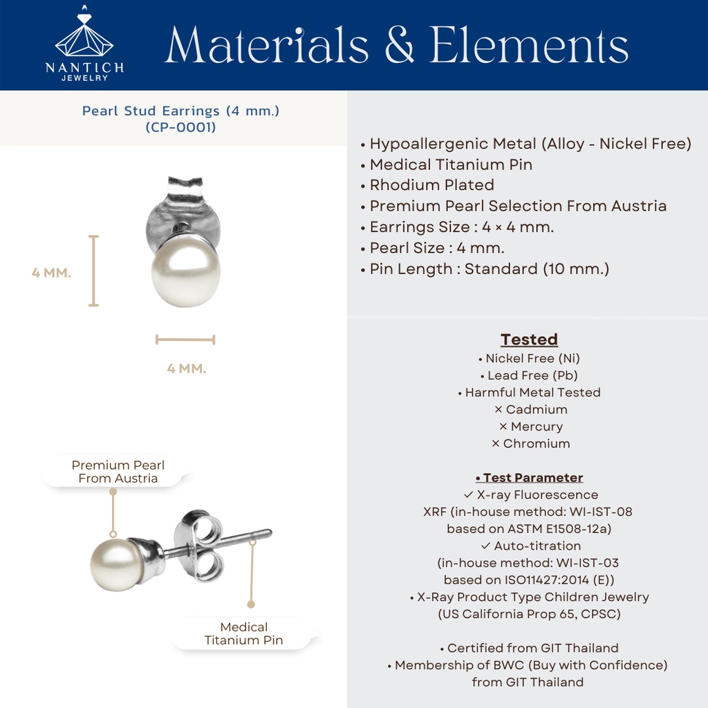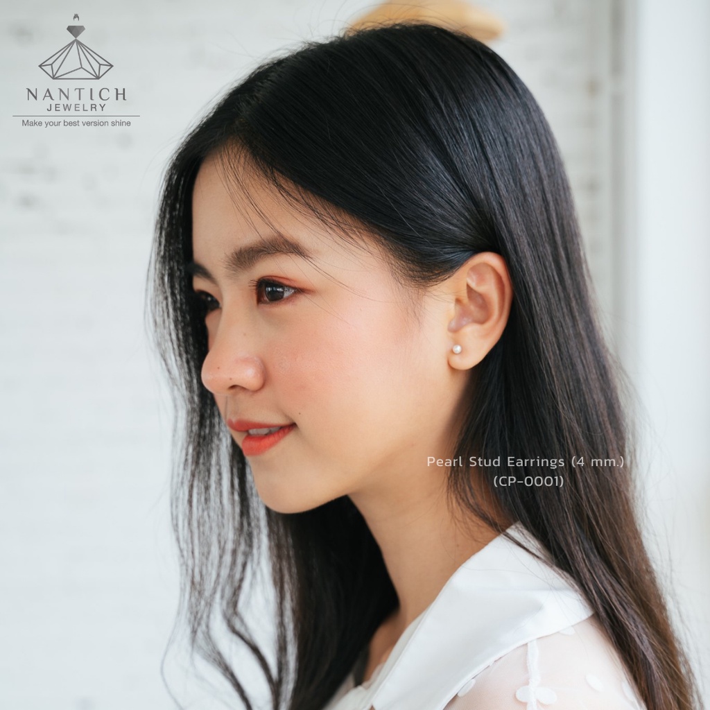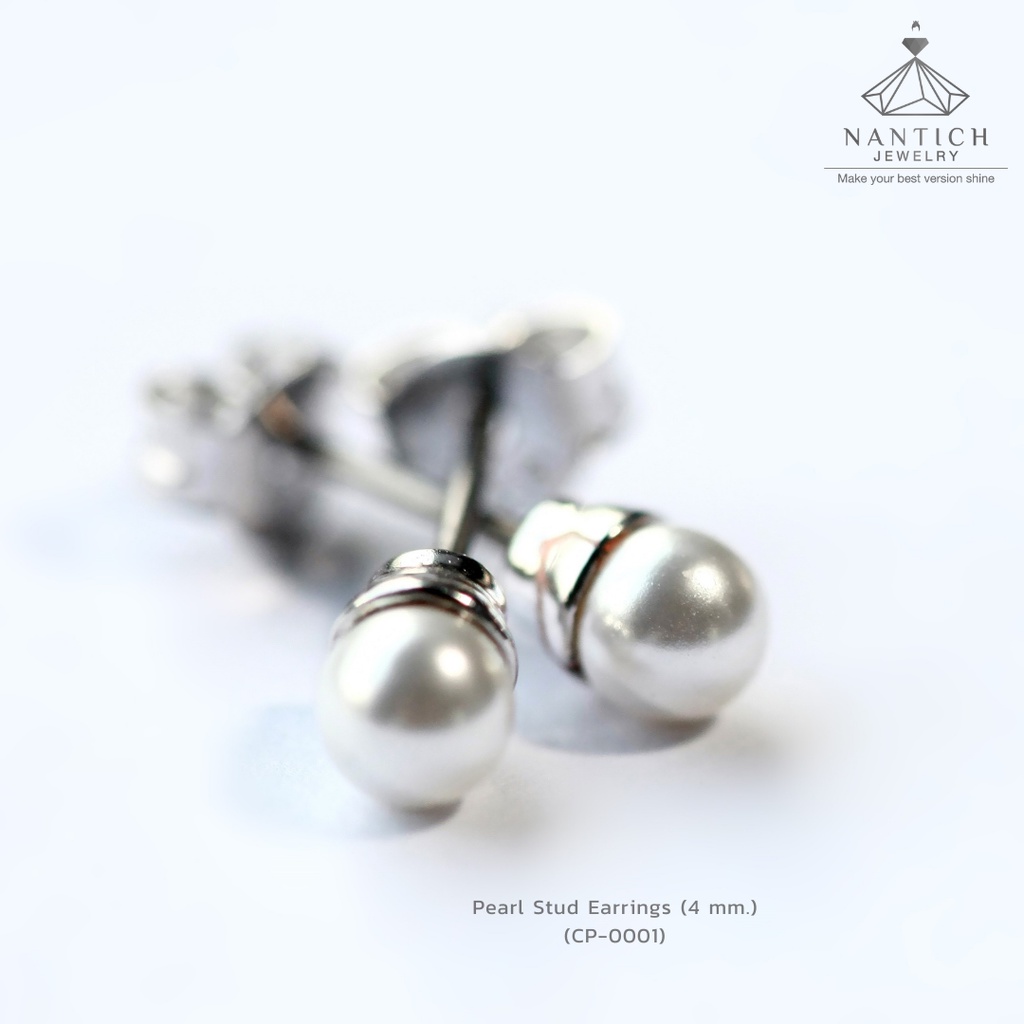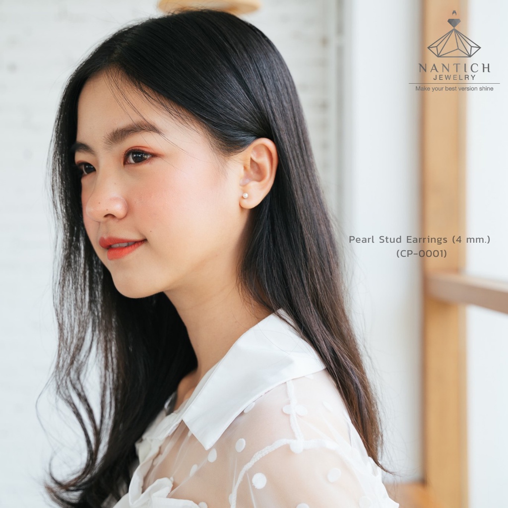 💎👩🏻⚕️ [เครื่องประดับ | ปลอดภัย] ต่างหู คนแพ้ง่าย : Pearl Stud Earrings (4 mm.) (CP-0001) Nantich Jewelry
