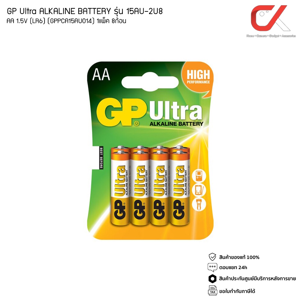 GP Ultra ALKALINE BATTERY ถ่าน AA 1.5V 1แพ็ค 8ก้อน LR6 15AU-2U8