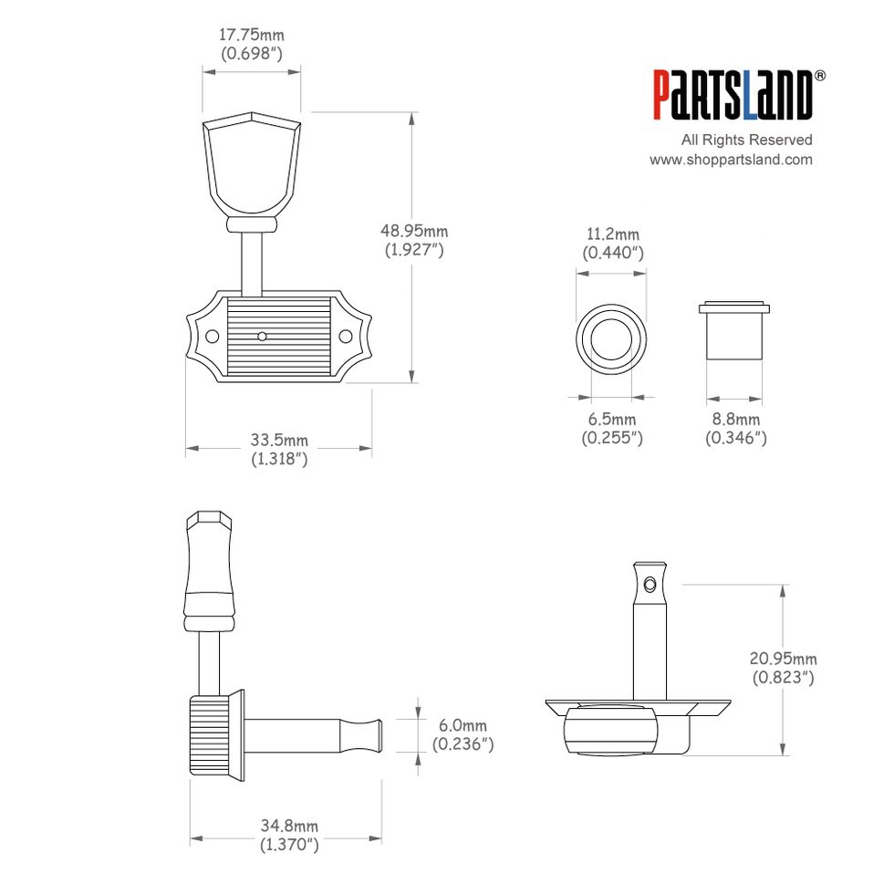 Partsland Machine Heads ลูกบิดกีต้าร์ Vintage 3+3 สี Gold ใบมุก เกาหลี(J44-GD)