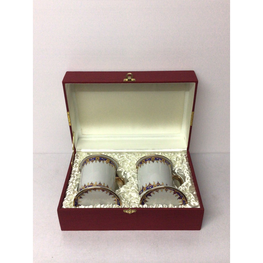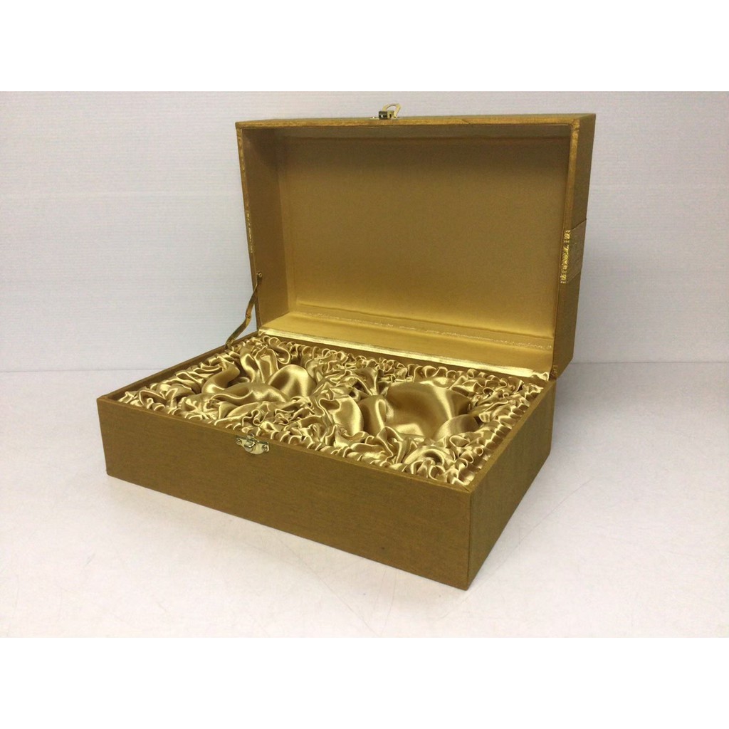 กล่องผ้าไหมแก้วมัคคู่พร้อมจานรอง มี3สี กล่องเปล่า สำหรับใส่แก้วมัคคู่ แก้วเบญจรงค์ งานเกษียณ