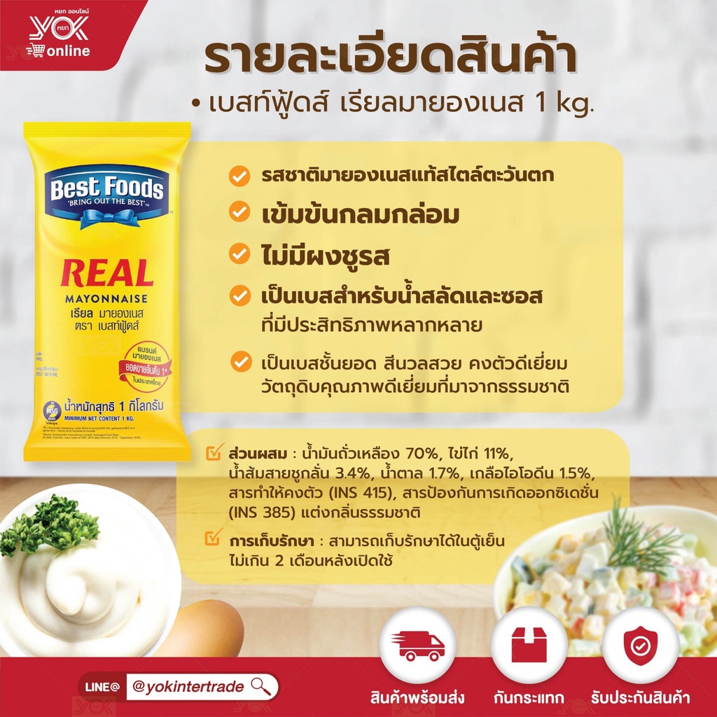ซอสมายองเนส เรียลมายองเนส ตราเบสท์ฟู้ด 1kg. หยกออนไลน์