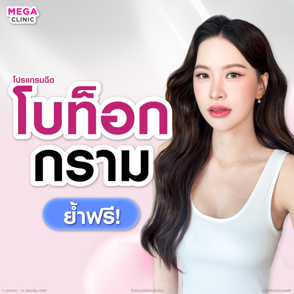 [E-voucher] โบท็อกลดกราม + งานผิว ย้ำฟรีอีก 1 ครั้ง MEGA CLINIC เมกะคลินิก
