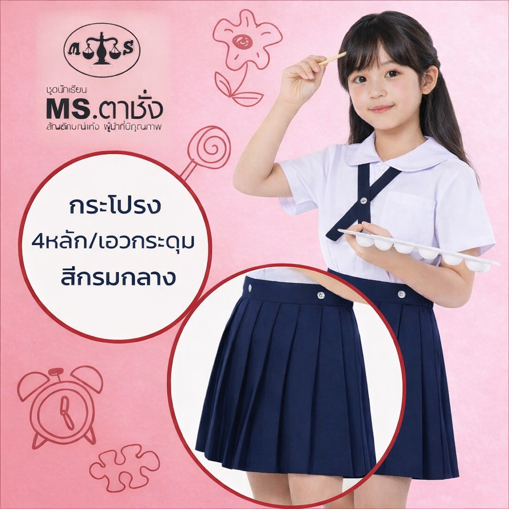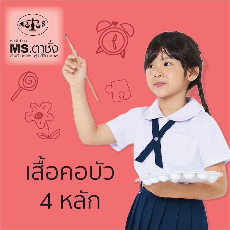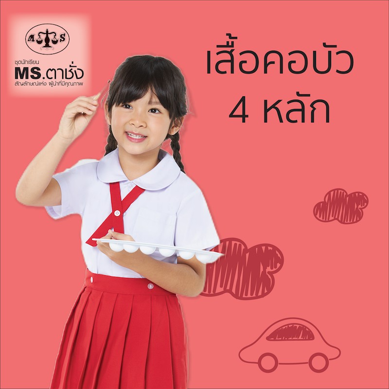 เสื้อคอบัว 4 หลัก -เอวกระดุม ไซร์ S,M,L,XL ถึง 9XL เสื้อนักเรียน MS ตาชั่ง สำหรับชั้นอนุบาล