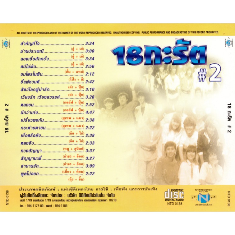 แผ่นซีดี เพลงไทย 18 กะรัต #2 (18 นักร้องเด่น จาก 18 วงดัง)