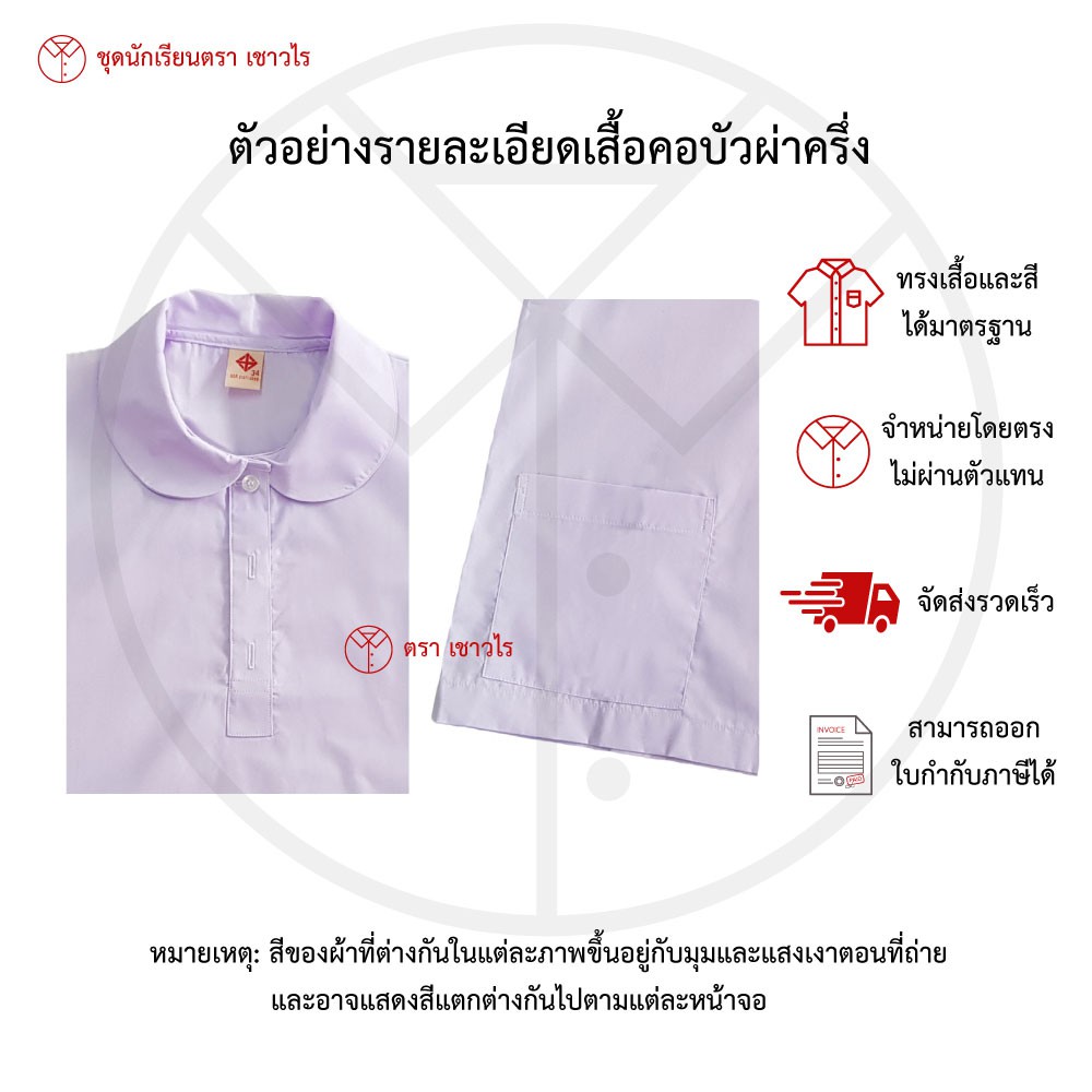 เสื้อคอบัวผ่าครึ่ง เสื้อนักเรียนหญิง ชุดนักเรียน ชั้นประถมศึกษา ชั้นมัธยมศึกษา ตรา เชาวไร