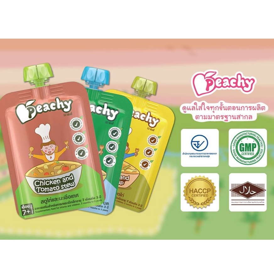 ผลไม้บด Peachy ซอสสูตรผลไม้ สูตรเนื้อสัตว์ อาหารเสริมพีชชี่ อาหารเด็กอายุ 6 เดือนขึ้นไป