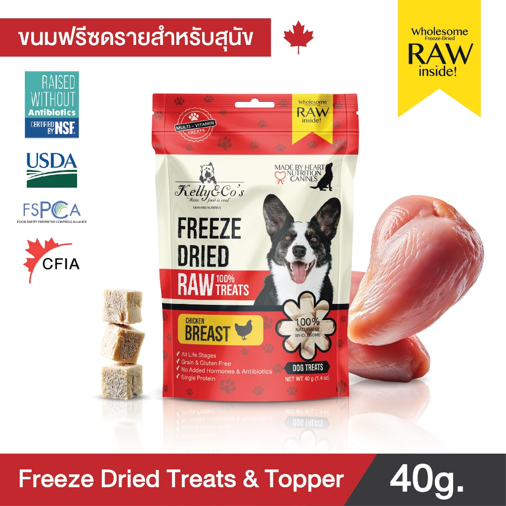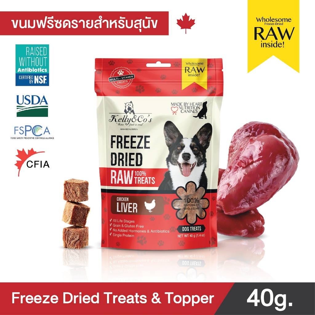 เคลลี่แอนด์โค ขนมฟรีซดราย รอว์ ฟรีเมี่ยม สำหรับสุนัข 40กรัม