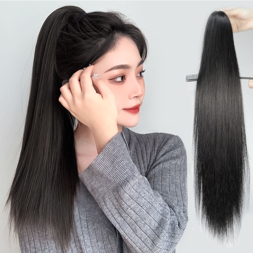 แฮร์พีชหางม้า ผมตรง แบบหนีบ สะดวก ผมสวยใน1นาที ผมนิ่ม ไม่พันกัน เหมือนผมธรรมชาติ ยาว50ซม.