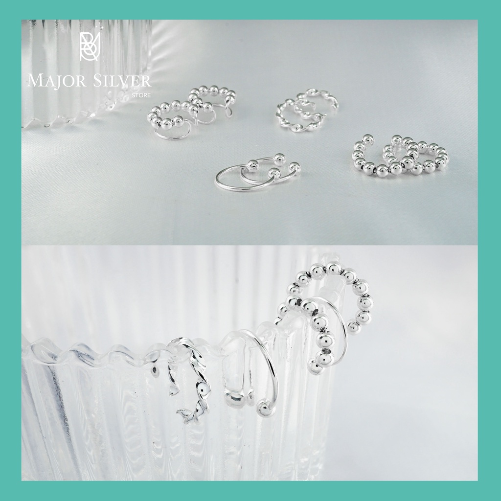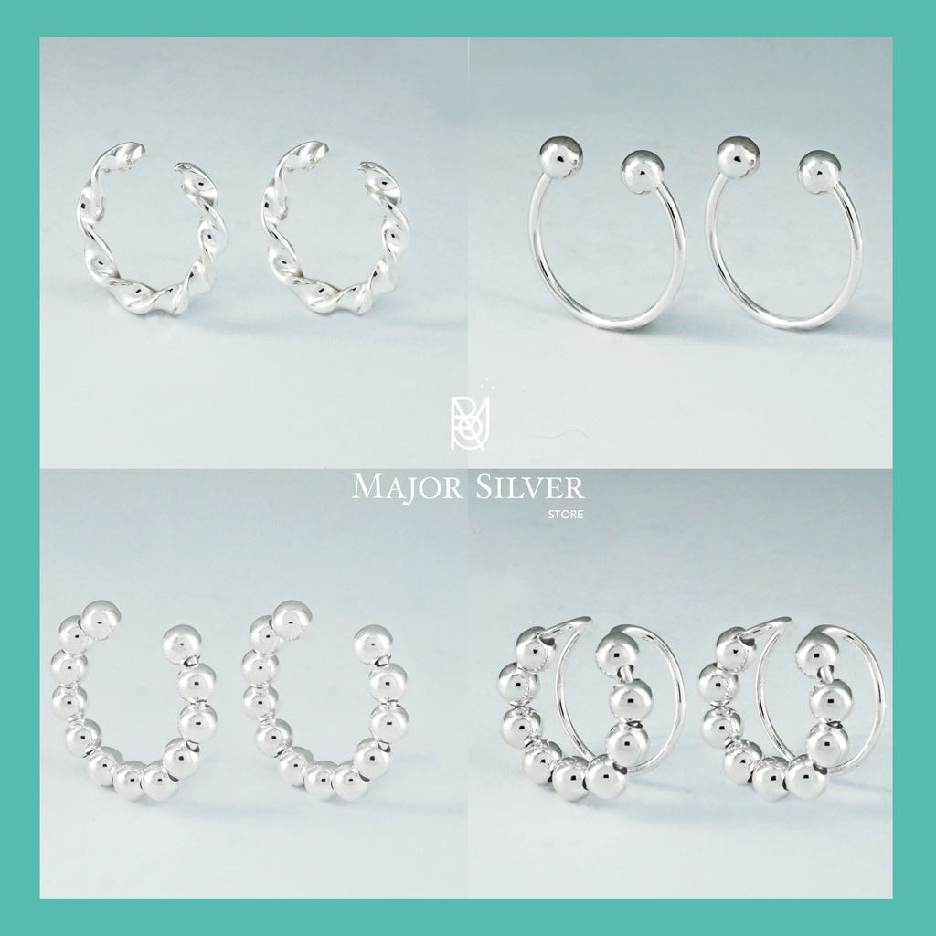 ต่างหูเงินแท้92.5% ต่างหูหนีบ ear cuff ต่างหูเกี่ยว เกาะ สไตล์ เรียบๆ