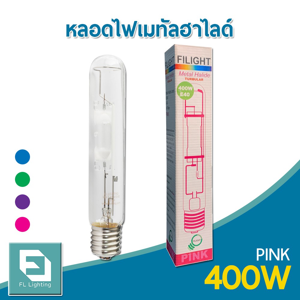 ( ส่งด่วน ) หลอดไฟเมทัลฮาไลด์ E40 400W ทรงกระบอก / Metal Halide แสงวอร์มไวท์, ฟ้า, เขียว, ม่วง, ชมพู