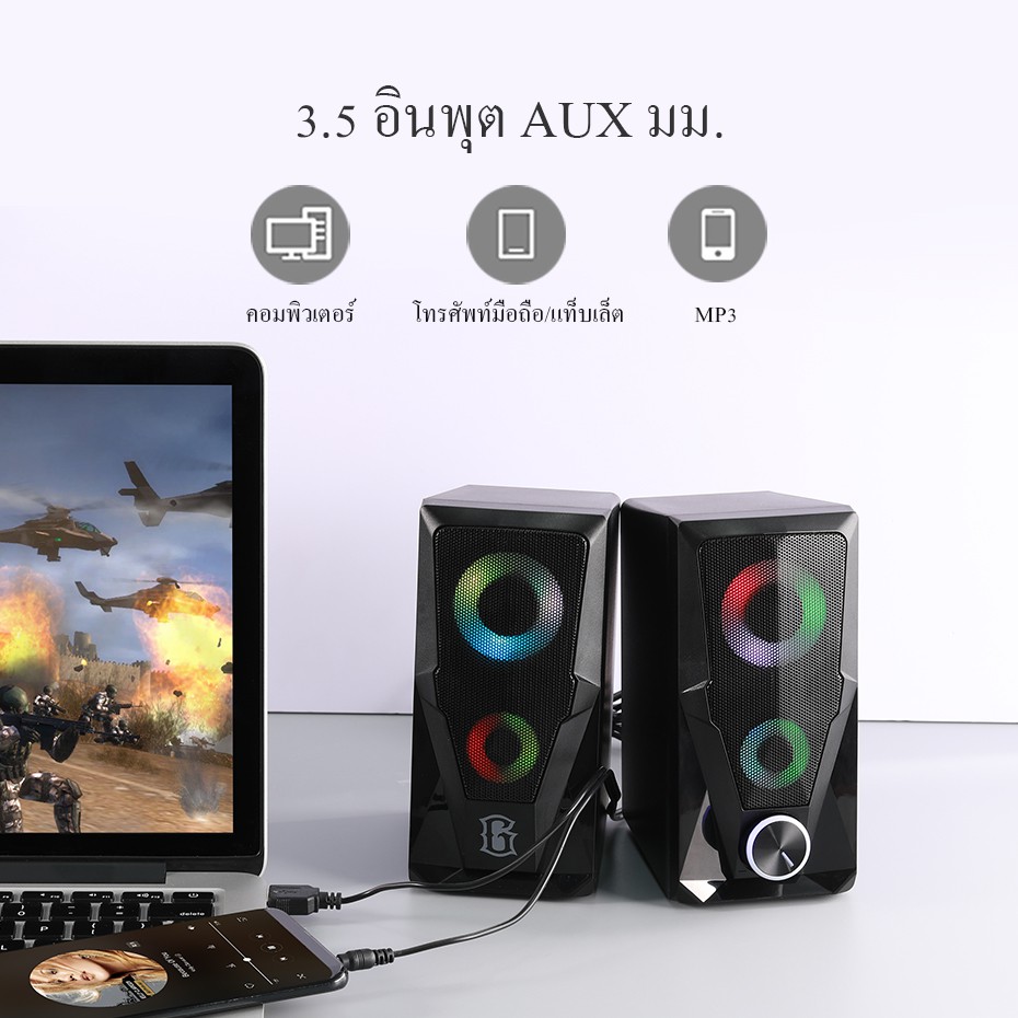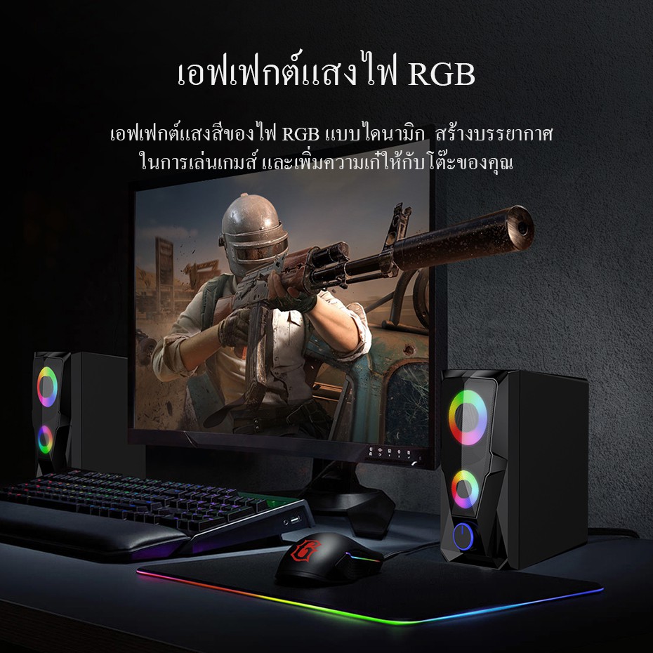 ROBOT ลำโพงเกมมิ่ง รุ่น RS200 ลำโพงคอมพิวเตอร์ Speaker Gaming ลำโพง(แบบคู่) มีไฟ RGB แบบ 6 วัตต์ มีปุ่มปรับระดับเสียง