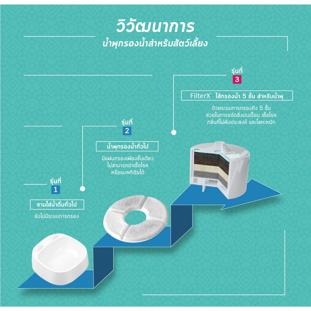 PAWOOF ไส้กรองน้ำพุแมว สำหรับสัตว์เลี้ยง ด้วยระบบการกรองน้ำ 5 ชั้น