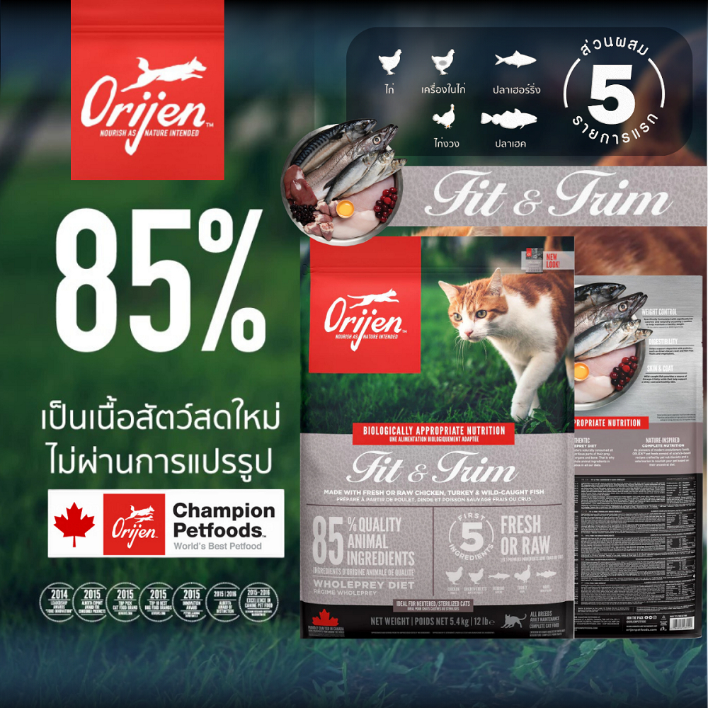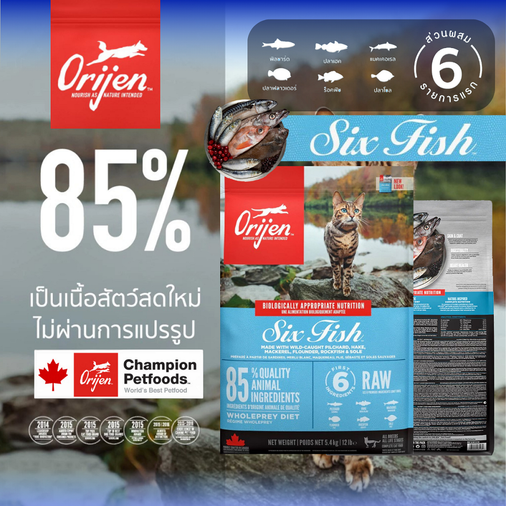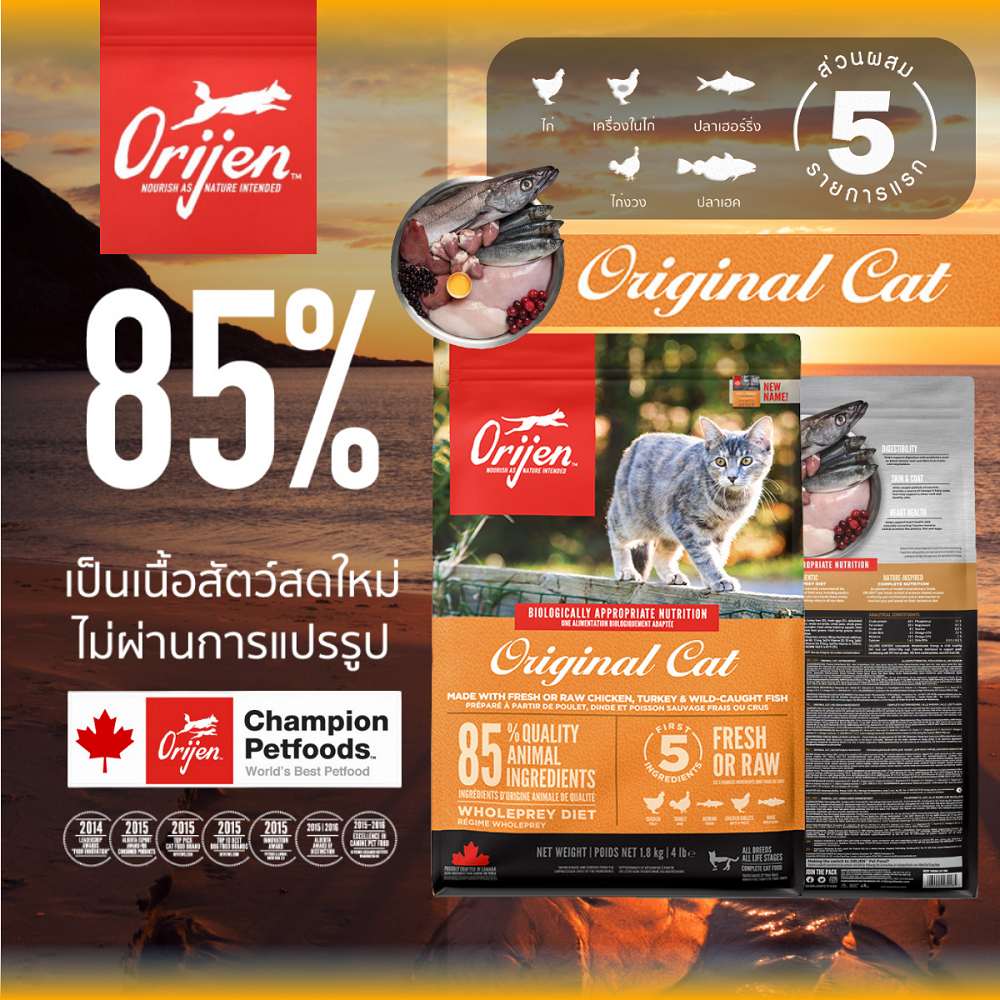 Orijen โอริเจน อาหารแมว ซูเปอร์พรีเมี่ยม รวมทุกสูตร ทุกสายพันธ์ุ ขนาด 1.8 กิโลกรัม