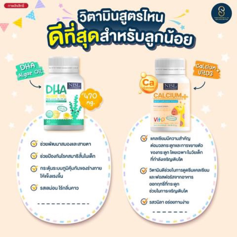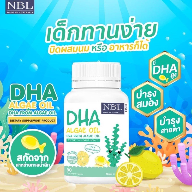 2แถม1 #ส่งฟรี NBL DHA ALGAL Oil วิตามินสำหรับเด็ก สกัดจากสาหร่ายทะเล 470mg. รสเลม่อน ทานง่าย