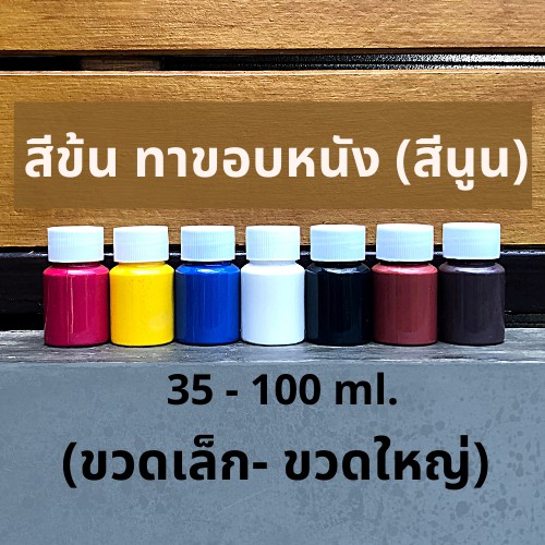 สีข้น ทาขอบหนัง (สีนูน) (1 ขวด ประมาณ 35-100 กรัม) มี 7 สีให้เลือก เน้นทาขอบหนังโดยเฉพาะ