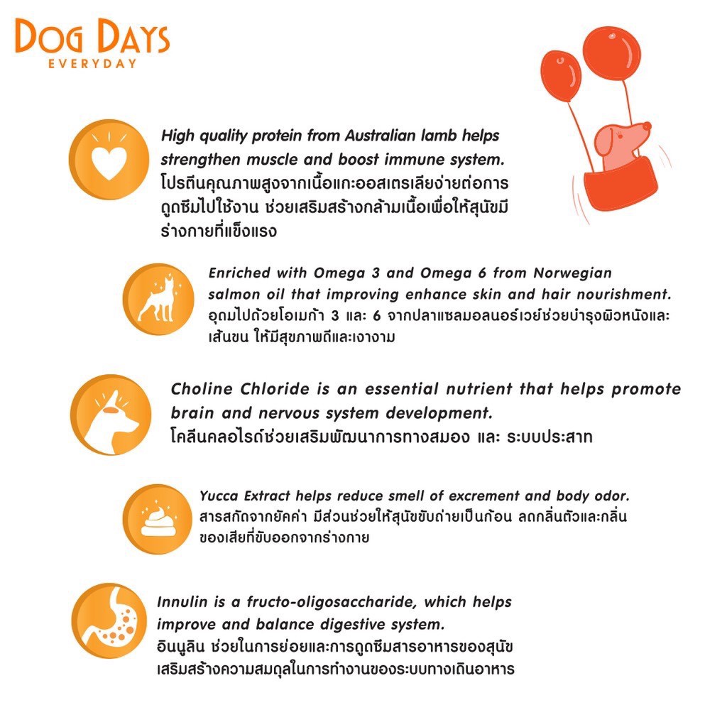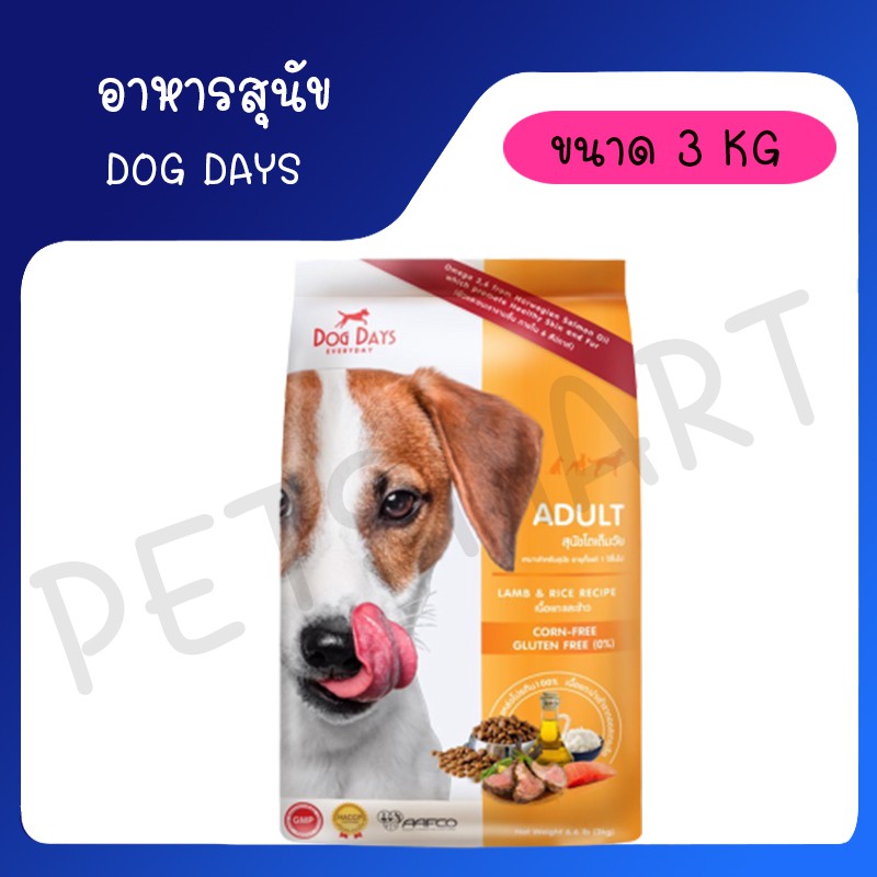 [1.5Kg-3Kg] Dog Days (ด็อกเดย์) อาหารเม็ดพรีเมียมสำหรับสุนัข รสแกะ ไก่ แซลมอน และลูกหมา