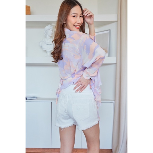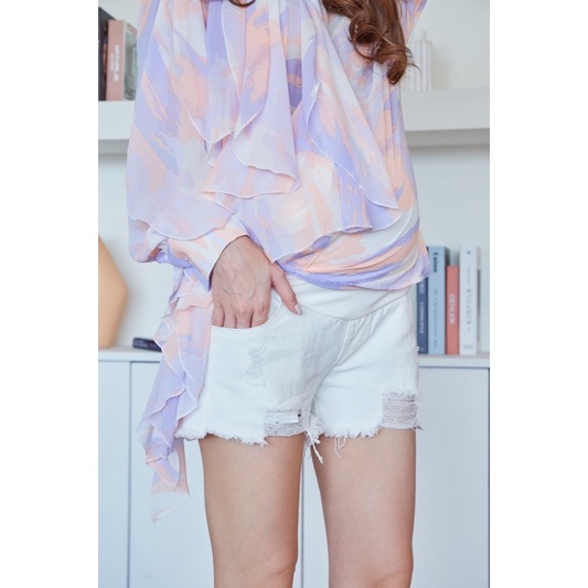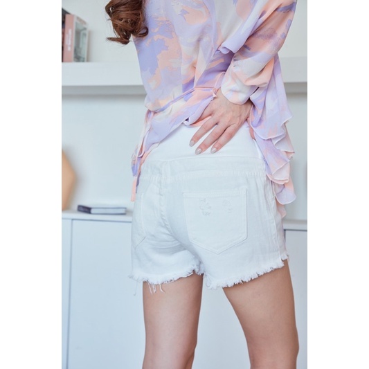 Minirin กางเกงยีนส์คลุมท้องขาสั้น รุ่น MY006 White short maternity jeans