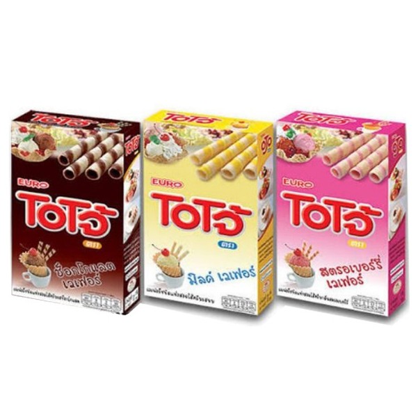 โอโจ้ เวเฟอร์ชนิดแท่งสอดไส้ครีม มี 3 รส นม,สตรอเบอรี่,ช็อคโกแล็ต 17กรัม แพค6กล่อง