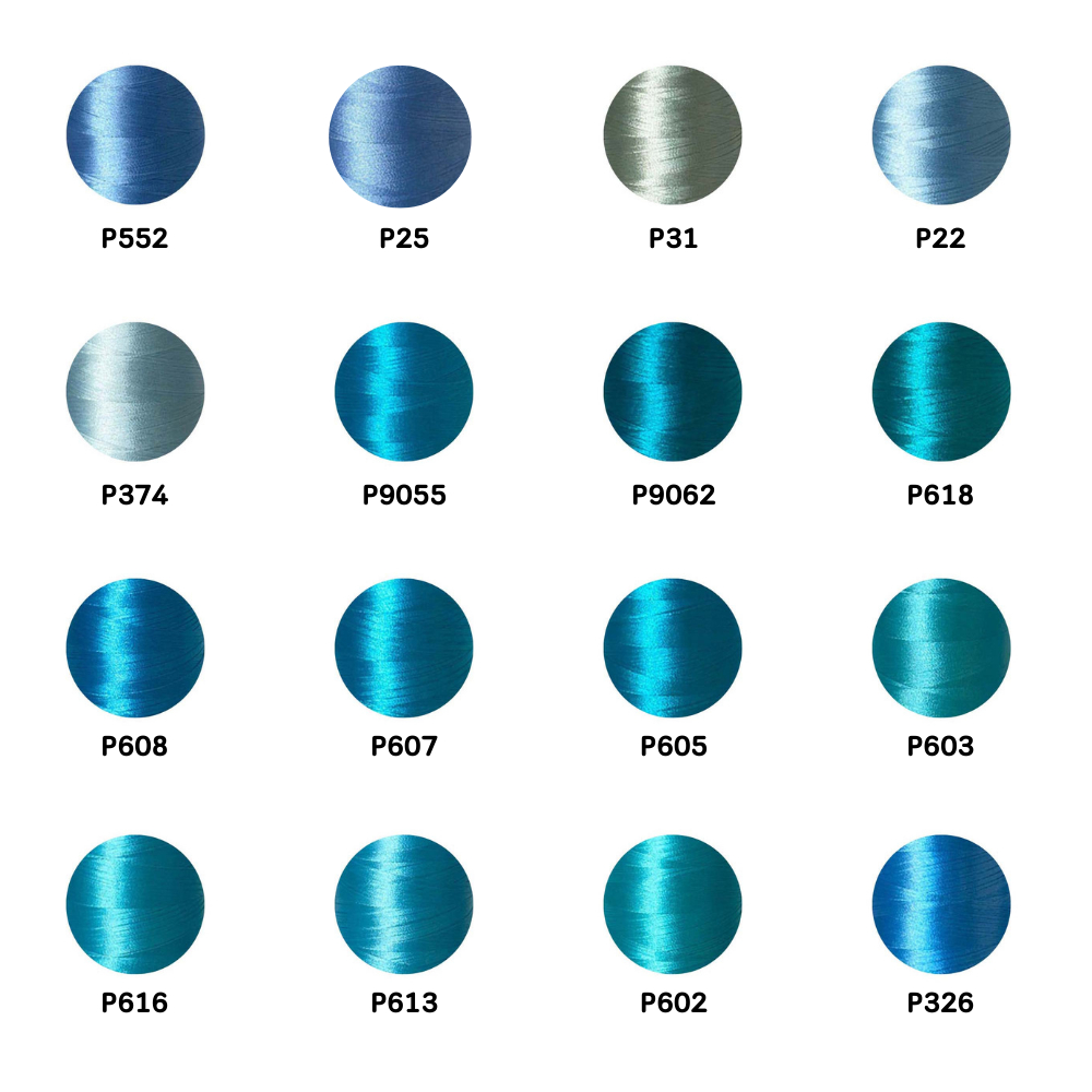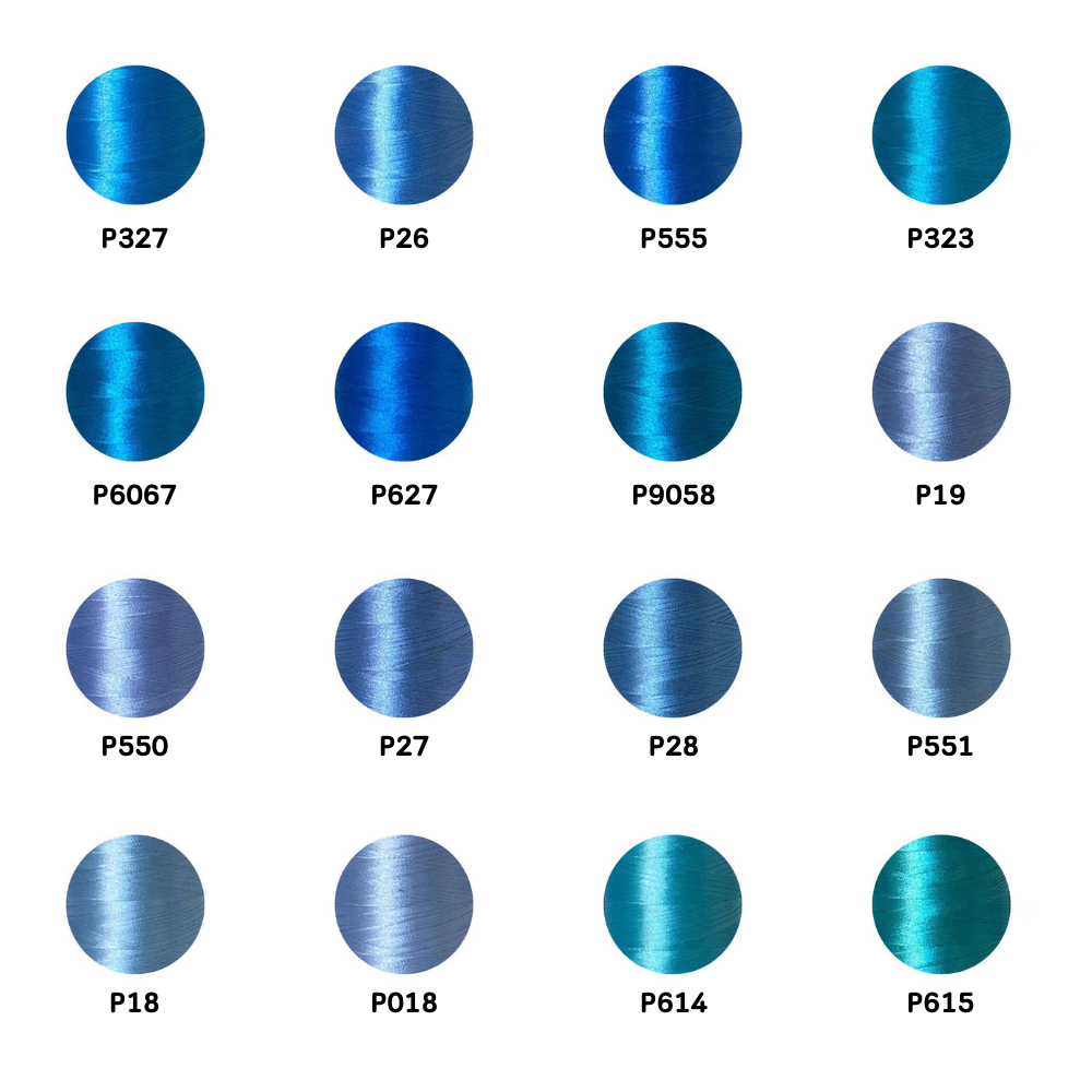 ไหมปัก GEM Embroidery Thread โทนฟ้า Blue ซักฟอกสีไม่ตก 3,000 เมตร Oeko-Tex Class 1