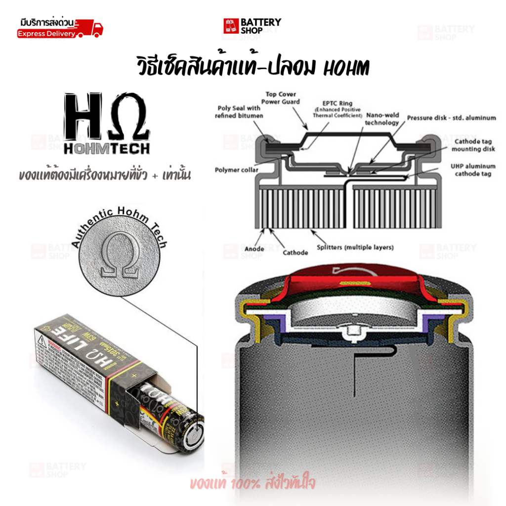 ถ่านชาร์จ HOHM RUN XL Li-NMC 21700 4007mAh 38.6A 3.6V High Performance แบตเตอรี่คุณภาพสูง