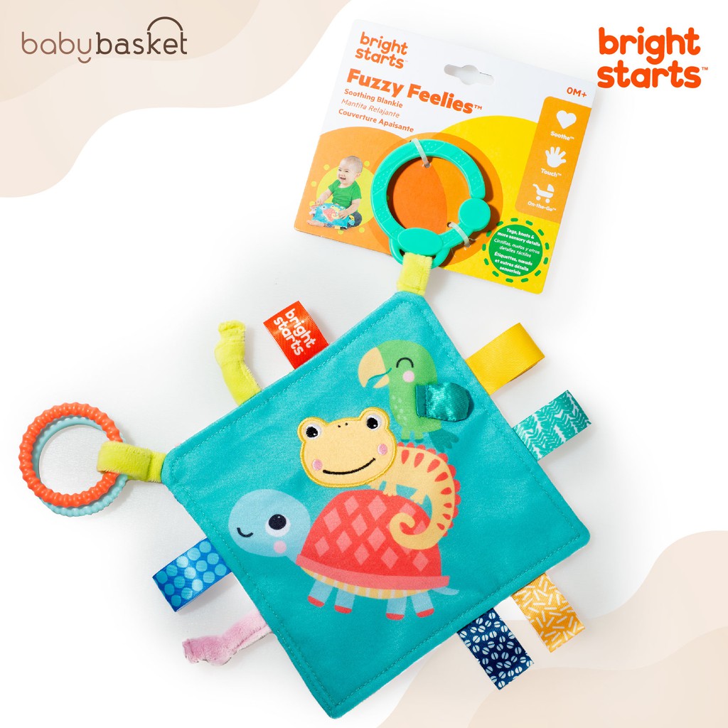 ของเล่นเด็ก ห่วงผ้ากัด พร้อมริบบิ้น ลายเต่าสีสันสดใส Bright Starts Fuzzy Feelies Soothing Blankie ช่วยเสริมสร้างพัฒนาการ