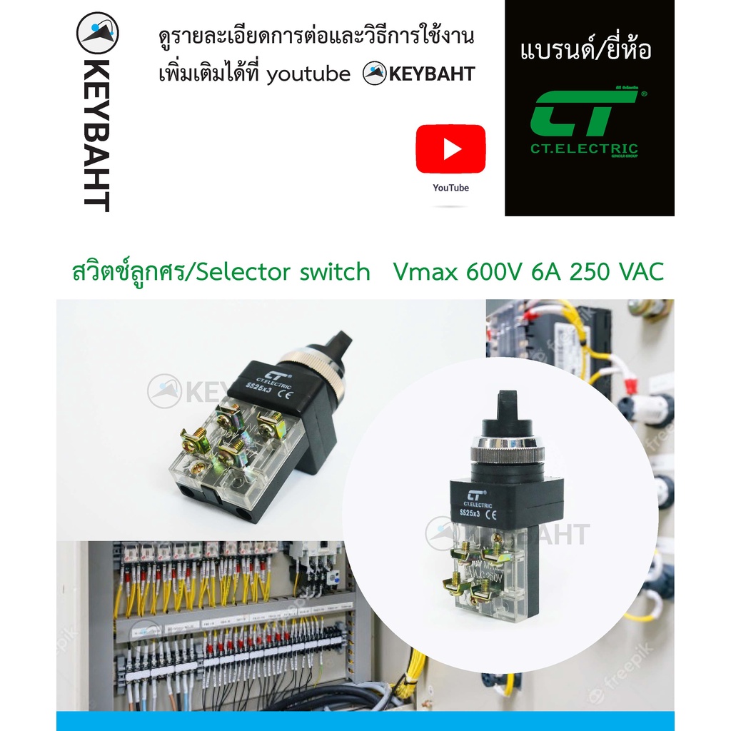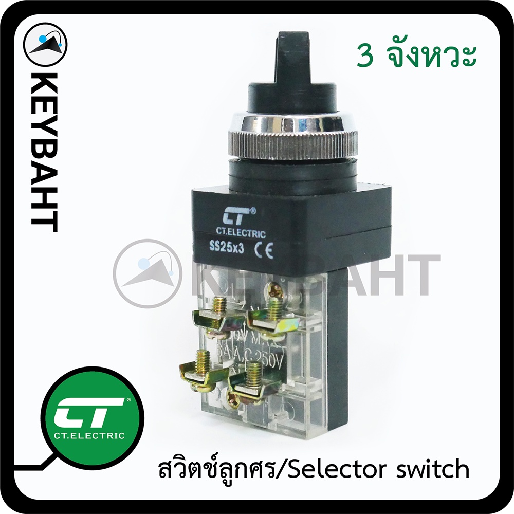 สวิตช์ลูกศร Selector switch 2จังหวะ 3 จังหวะ เหมาะกับงานตู้คอนโทรล ควบคุม ปั้มน้ำเปิด-ปิด สลับทางหมุน แบรนด์ CT รุ่น SS2