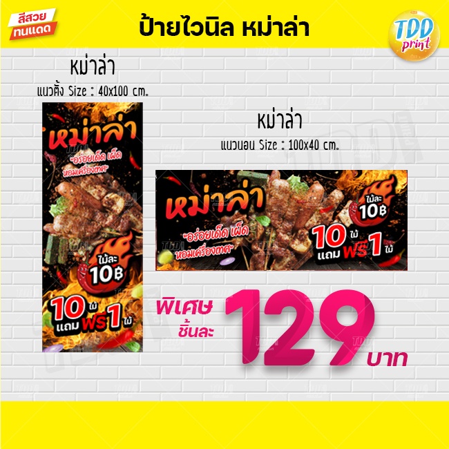 ป้ายไวนิลหม่าล่า ไวนิลหนา แข็งแรง ทนทาน สีสันสดใส
