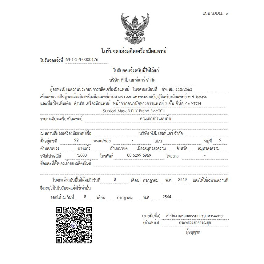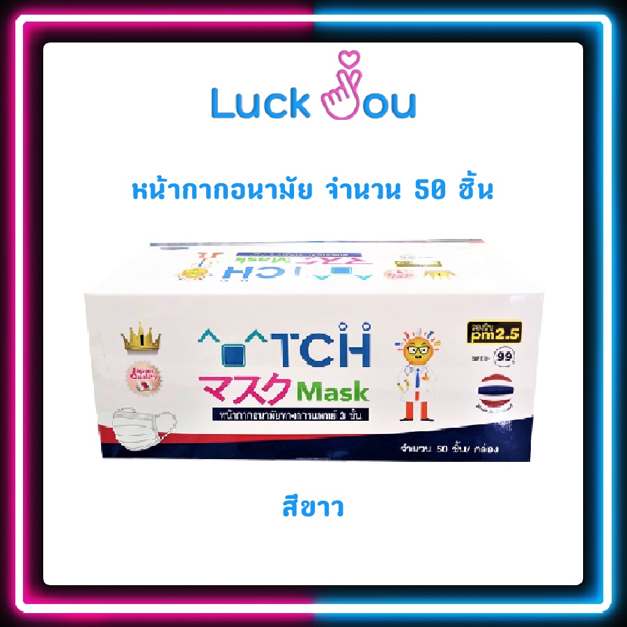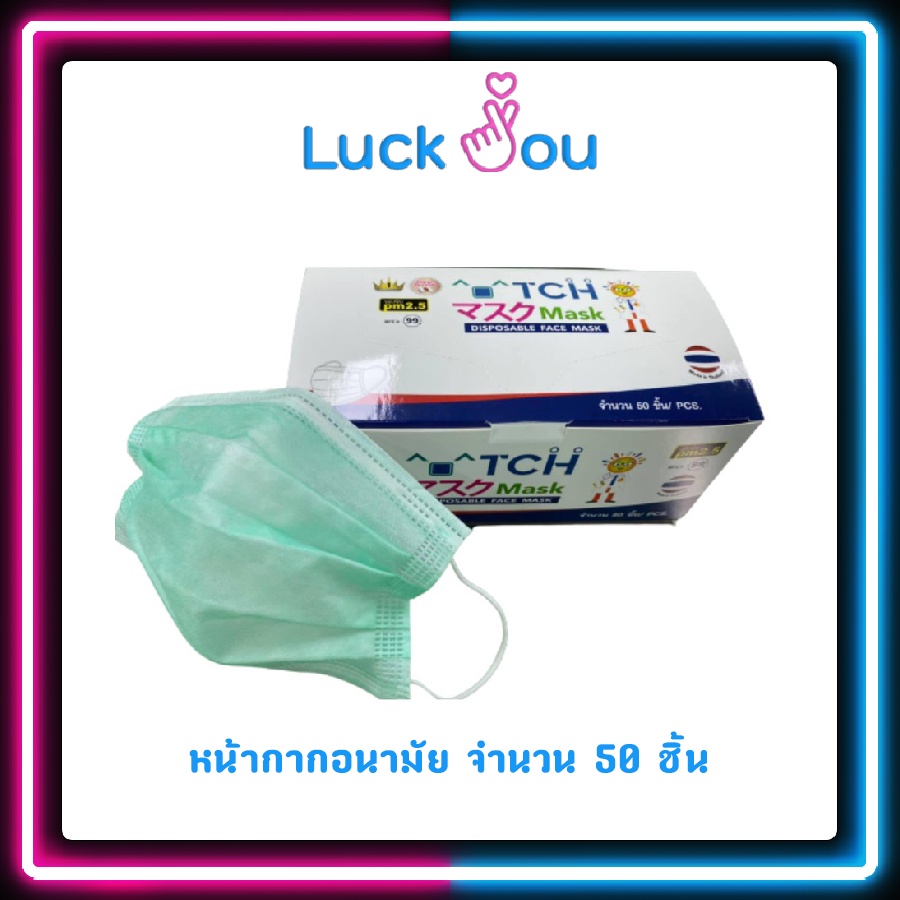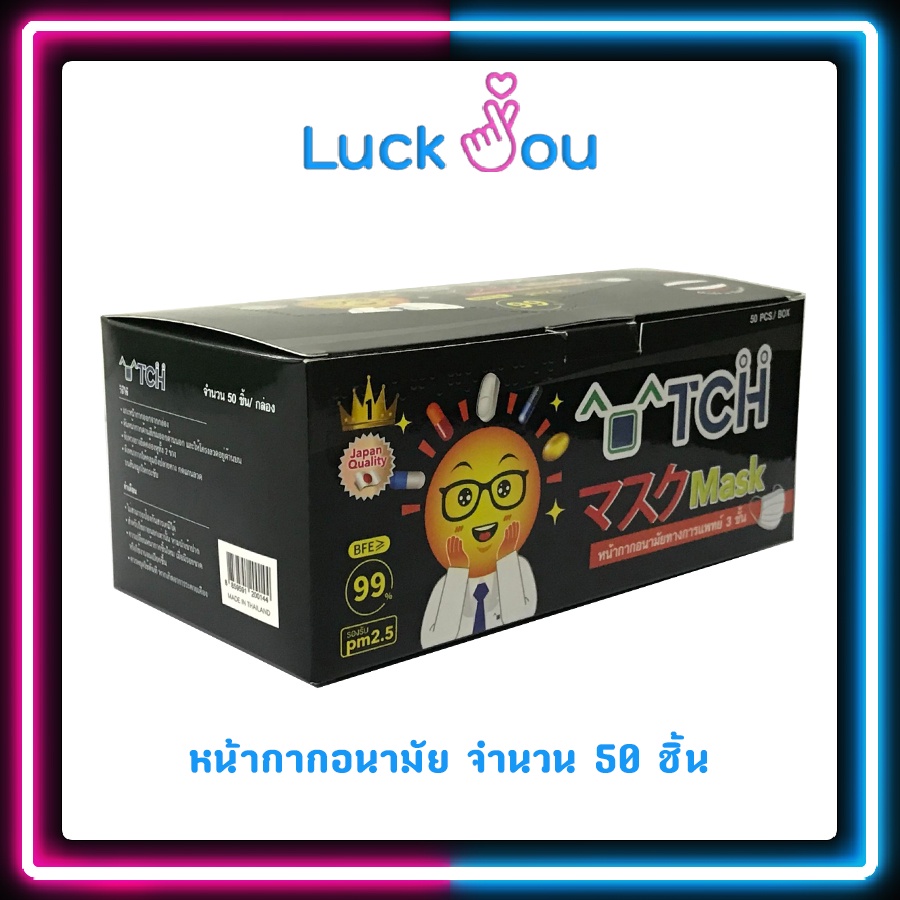 TCH Mask หน้ากากอนามัย ทางการแพทย์ 50ชิ้น/กล่อง รองรับ PM2.5 งานไทย มาตรฐานญี่ปุ่น (มี 3 สีให้เลือก)