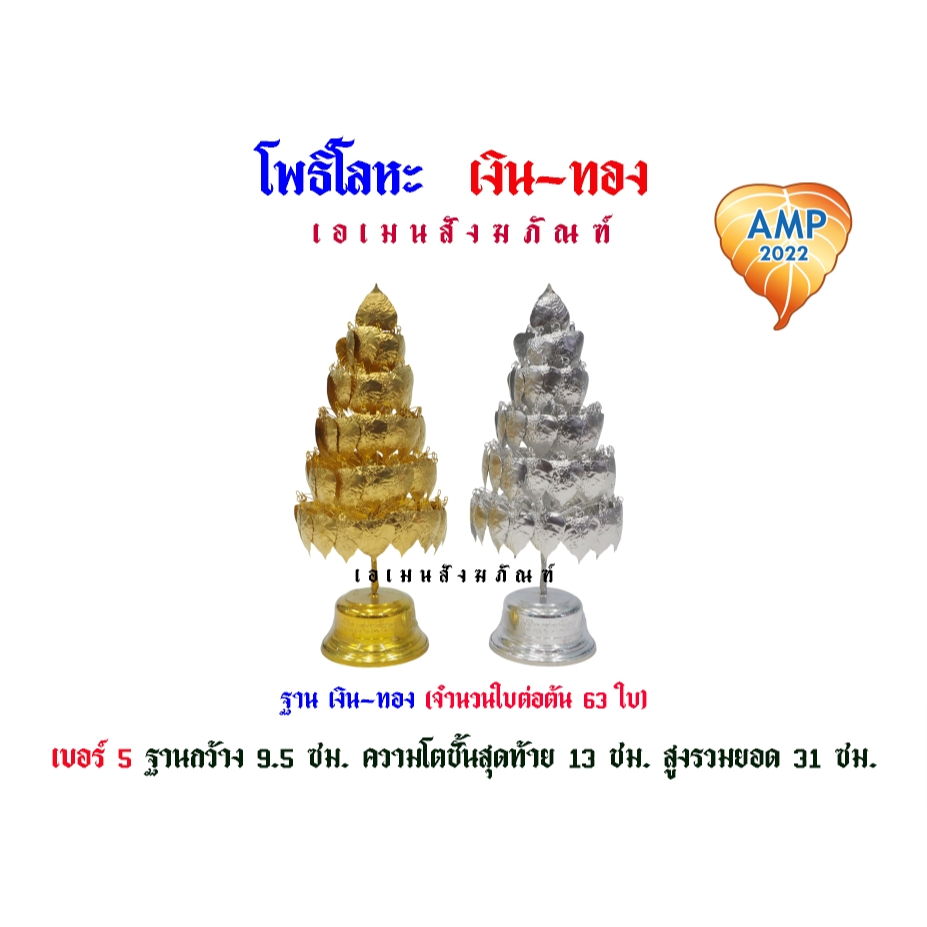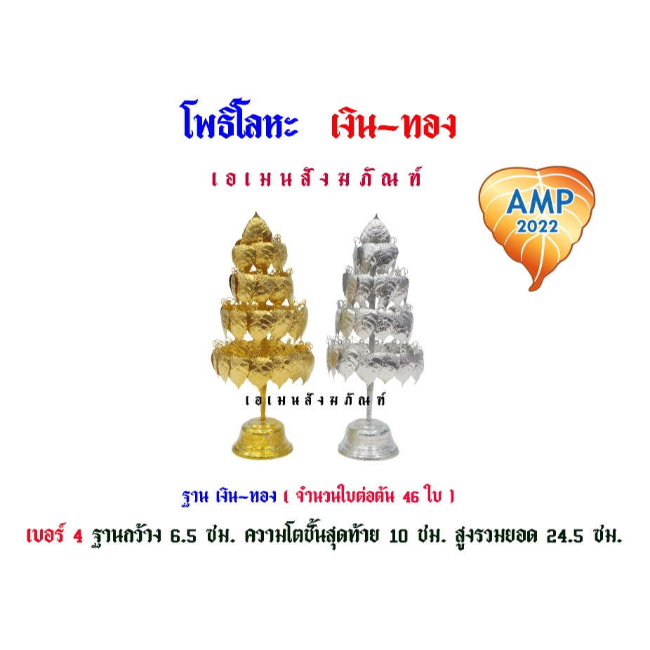โพธิ์ โลหะ เงิน-ทอง ฐานเงินทอง เบอร์ 3/4/5/7/9 (ราคาต่อ 1 คู่)