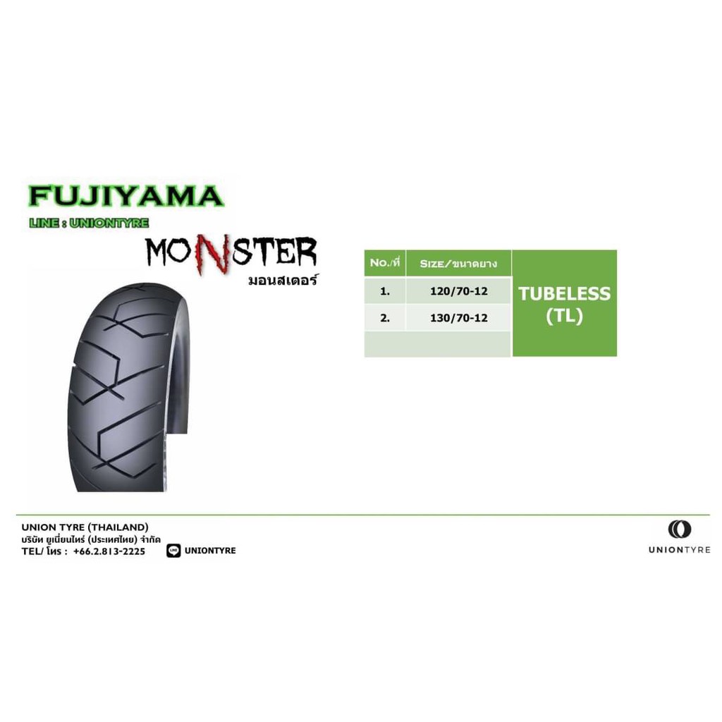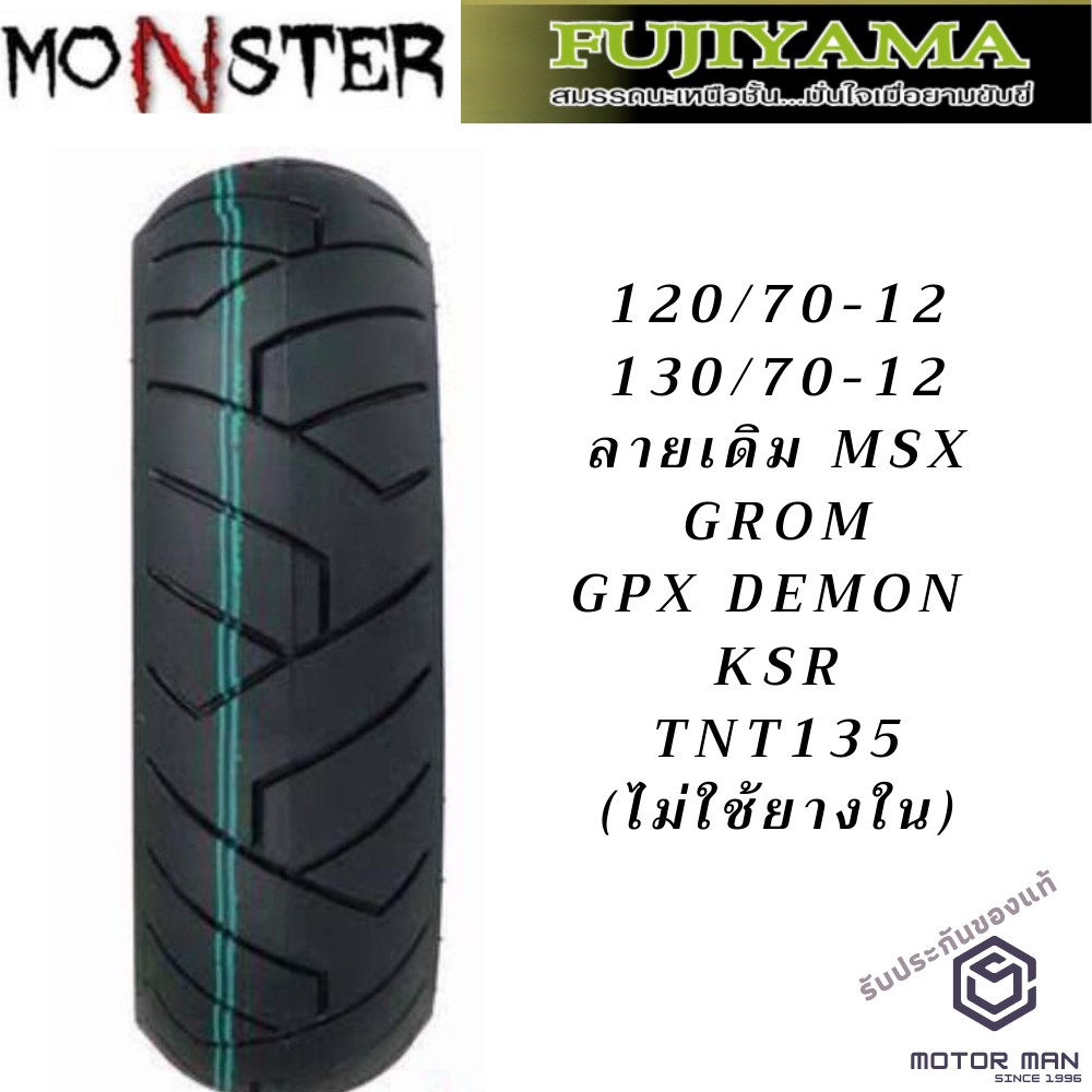 ยาง MSX GROM GPX DEMON KSR TNT135 คู่หน้าหลัง 120/70ขอบ12 130/70ขอบ12 ยี่ห้อ FUJIYAMA ลาย MONSTER ไม่ต้องใช้ยางใน