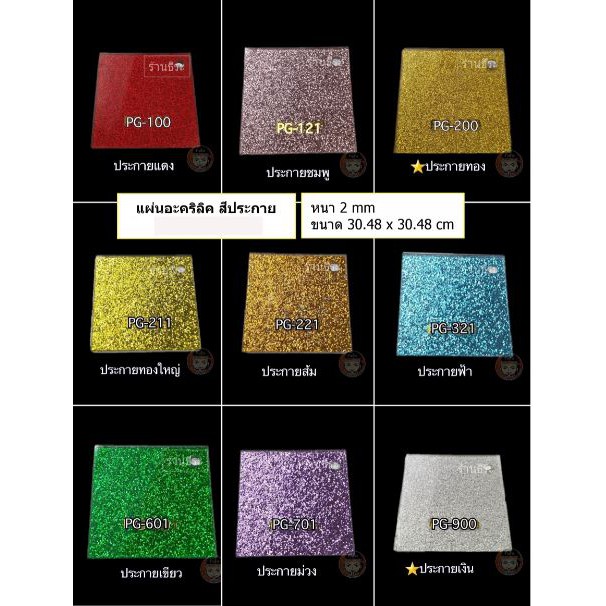 แผ่นอะคริลิคสีประกาย หนา 2 mm ( ขนาด 1 x 1 ฟุต)