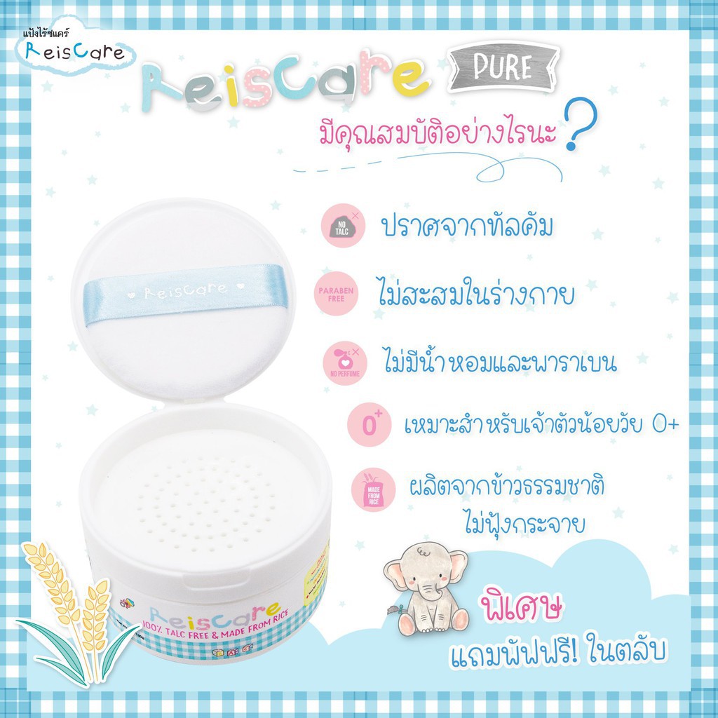 ReisCare 100% Talc Free & Made From Rice Baby Powder Pure 130 g.
