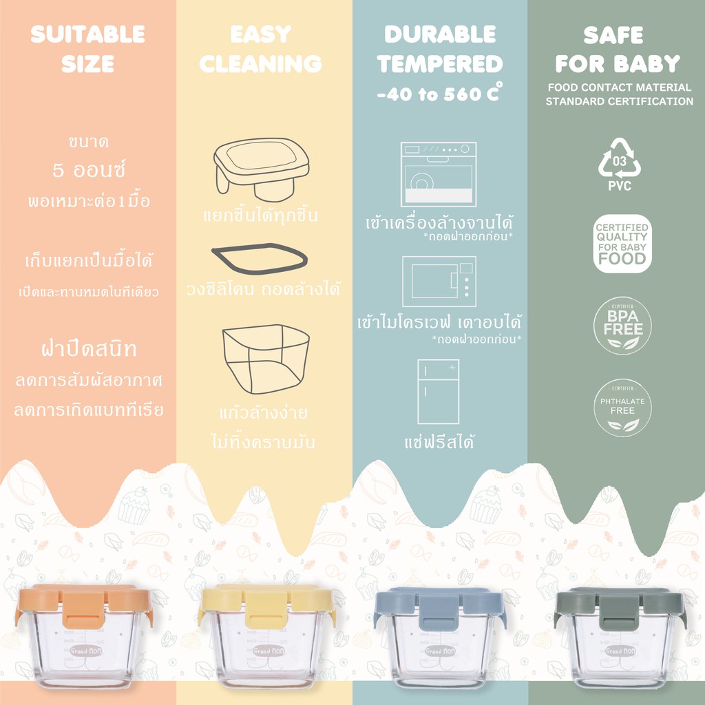 กล่องเก็บอาหาร กล่องแก้ว / ซิลิโคน ใส่อาหาร สำหรับเด็ก Grand Mom (แกรนด์มัม)